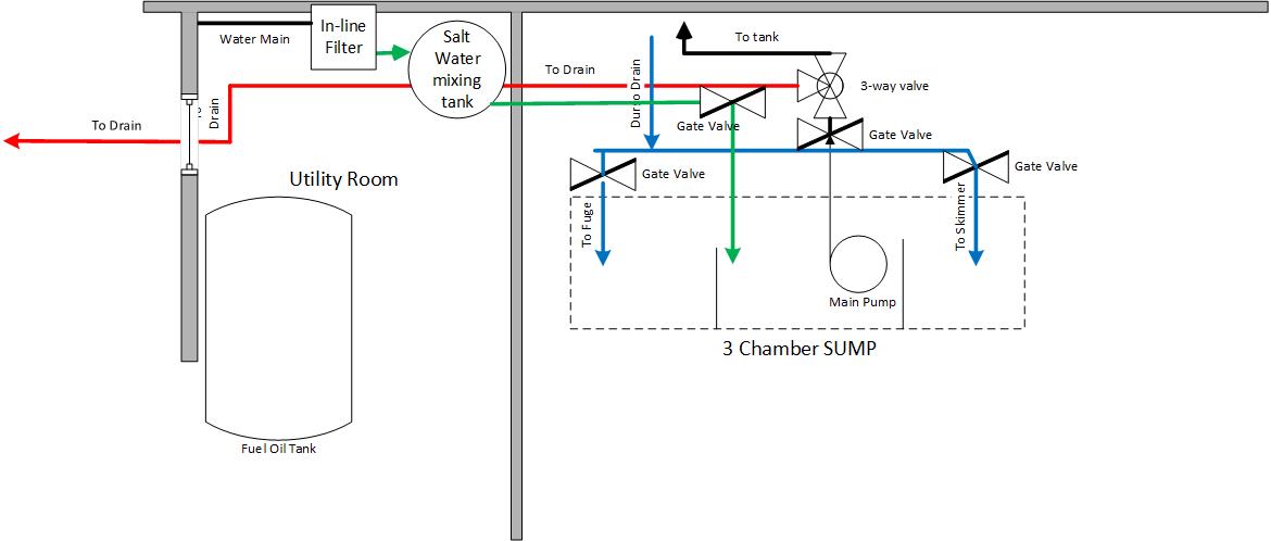 I think I can re-use most of my equipment from the 54G corner tank once the 90 is up and running. Will transer the RKL, skimmer, ATO, doser, main pump. Already bought a new Jabeo RW8, maybe get another or just add my existing WP25 depending how I like the flow. The 90G will be relocated to the family room in the basement. Probably remain a mixed reef with LPS, zoa dominate and a little SPS. The basement location allows me to use some area in the utility room to setup a dedicated salt water mixing area, plumb that into the sump, and also plumb a drain out backyard into the woods. Should allow water changes to become really easy instead of lugging around 5g pails like I've been doing for 4 years. I think it is the water changes that had really turned me off to the hobby.