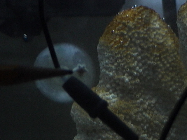so turns out that the "white spots" that i was freeking out about was olny sand my brother pointed it out and i moved the rock and it all came right off... im a mess lol