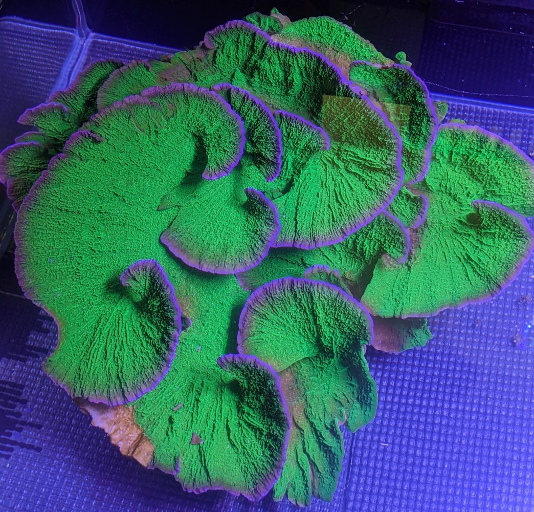 Wow that’s gorgeous I wish I had space in my tankLeng Sy montipora - rich green with purple rim