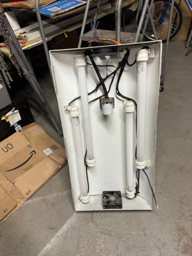 Looks like I sold the tub will update soon. Many more items are coming for sale. When I say many more this is an understatement. Here is a pic of the pendant. It has water proof pc sockets installed one Mh socket two ice cap fans . It’s all aluminum but constructed from thicker aluminum stock. Can be easily retrofitted with leds. 40.00 takes it