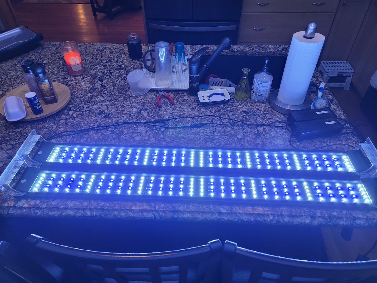 2 - LED 4 ft strip lights with actinic and white lights. $40 each