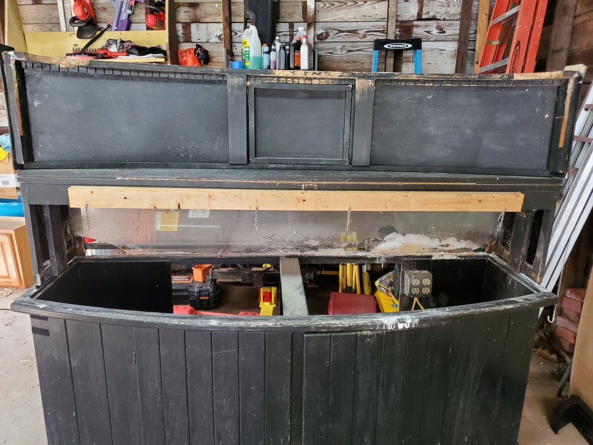 The stand may be available if a buddy doesn't take it, but the canopy definitely is. Custom built, could be cleaned up and painted but salty and dusty as is. Top flips up, also has removeable feeding panel. Not many options for canopies on 155 bowfront, so offering it up if anybody wants it. Free, or a raincheck on a nice frag down the road if I rebuild. I have been out for about 5yrs but tank was still wet, as I emptied it I felt more like it was a new beginning rather than the end of something...