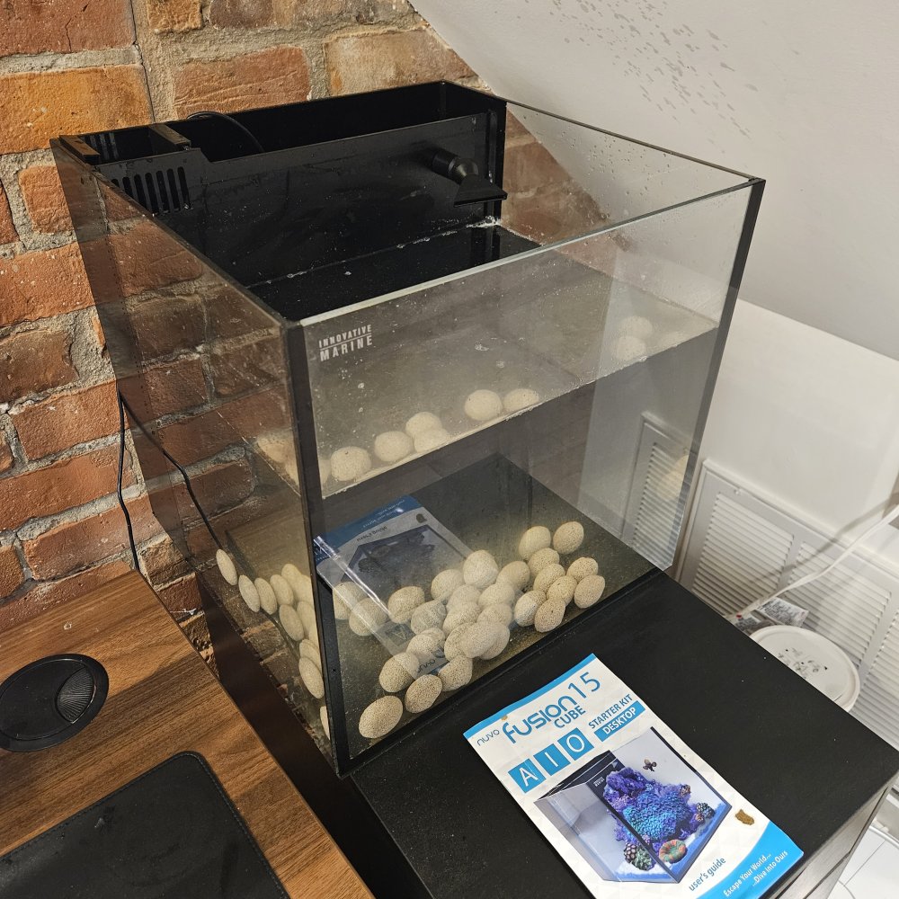 I purchased a 15g cube (model = NUVO Fusion) that I filled with water but never really used for livestock. It has: - Integrated pump - Sock filter - back panel built-in set up as a mini-sump Selling for $50 OBO, (MSRP $100)