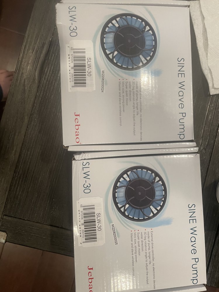 The Reef Pit Well-Known Member BRS Member Dec 24, 2022 #1 2 Jebao SLW-30 wave pumps $75 each or $140 for both pick up in Haverhill ma 01830 , only one open never used , bought them and didn’t realize they don’t work on 3/4 (19mm) glass you have to have 15mm or less to use these . My mistake your gain Attachments 351EFACD-9547-4CB2-9C8F-2EB16A686602.jpeg 116.8 KB · Views: 131