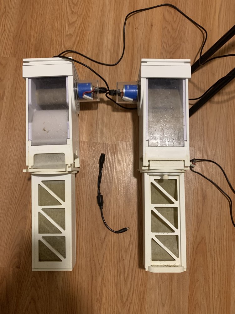I have 2 Klir DI-4 filter fleece rollers with the Y connector for the motors. I have the controllers (5 or 6 I think) but they all failed so I would run this off my Neptune apex system. One of the wooden pieces at the bottom of the roll on one of the units broke on one side, but does not seem to have any affect on the performance. $180 for both or $100 each.