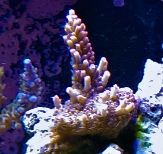 I was getting good growth with the 14k but the color was not what I expected so I changed it to a 20k radium bulb. I also added a GFO reactor not no reason other then I had a spare one around. My water params were pretty much 460ca, 10alk, 1500mag, ph 8.3, Phos .01, Sal 1.024. Now for the oh no, I use a mixture of NSW from Nahant that I run carbon and an UV for a day. I also started using Red sea pro salt, I found I had to tweak the water less with the red sea over my old reef crystals. I do feed my corals (Cyclop-eez soaked in Phyto feed and use AcroPower. The tank has one pr of clowns and a pr of pearly jaw fish. Water flow from the returns and a pair of RW15s. Glued it and ever touched it again, that I think is the important part, LEAVE it alone.