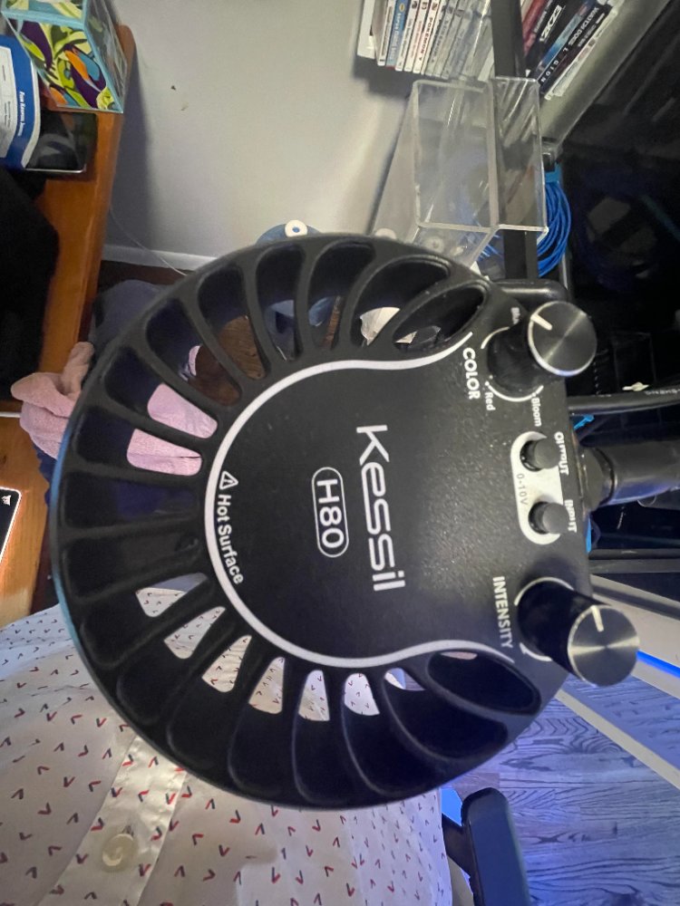 The Kessil H80 was purchased 2nd hand also but only used when tested. I just turned it on and it works like its supposed to...The original owner used for 5mths (he said) and then changed his sump design and went another way. This thing is mint. No dents or damage at all. Great light for under tank or over a remote sump. Kessil makes superior products and are worth the extra money IMO compared to the Chinese junk. Asking what I paid $90.00