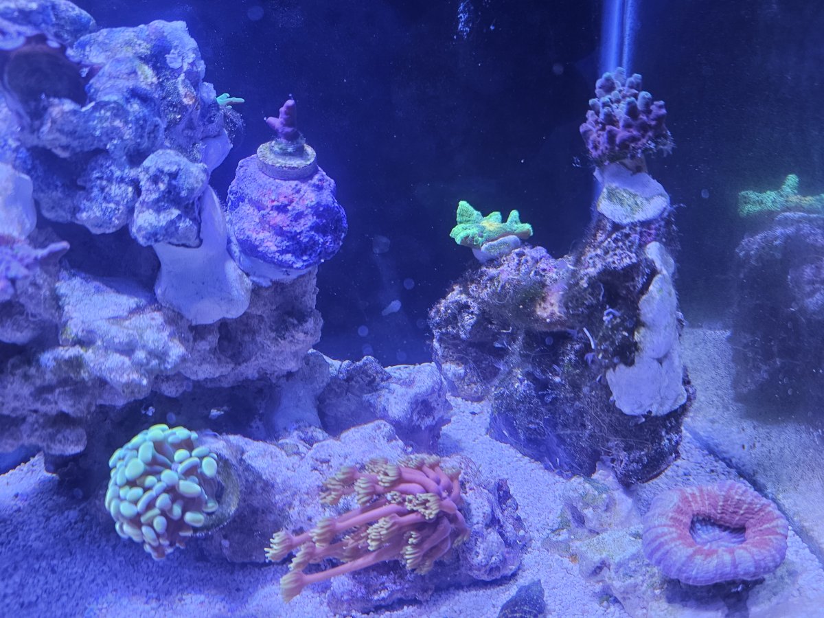 No plans to add anymore till they grow out more but seeing lots of noticeable growth on sps. Added an urchab and desimated hair algae. Now im just cleaning the 1 or 2 spots bubble agae shows up.