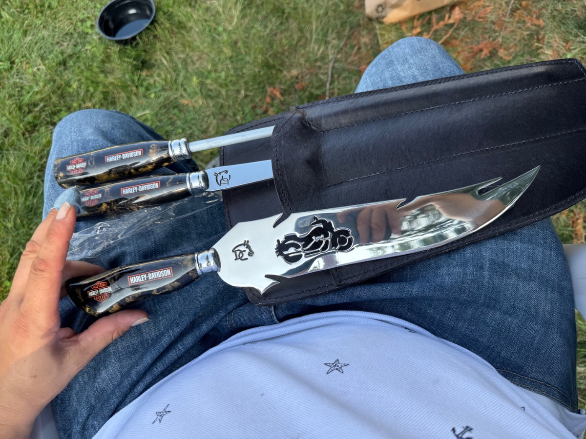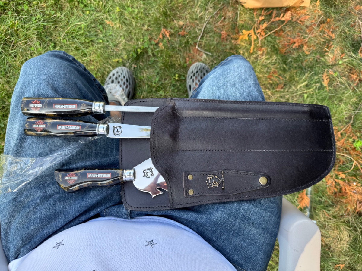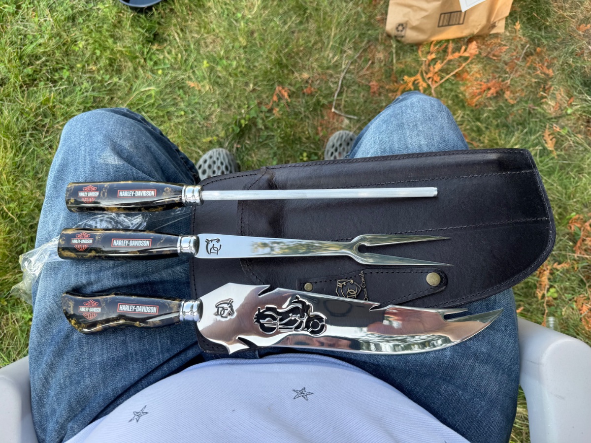 Gone $250 asking Harley Davidson 10 inch knife-collection and sharpen tool and fork steak