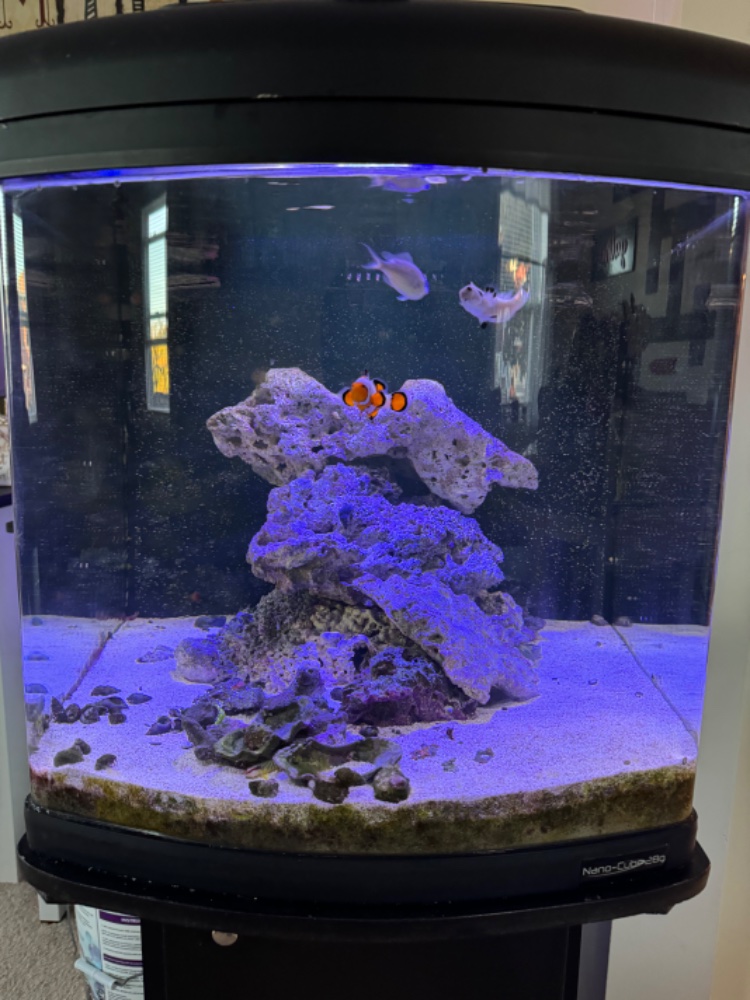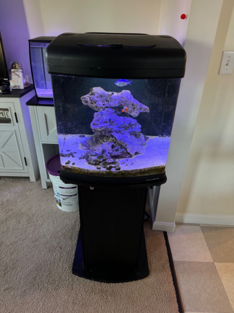 28 gallon biocube with WiFi ZETLIGHT led installed. Live rock and sand, platinum storm clown and I believe a snowflake clown. Blue/green chromis. $200 takes it all. Bring buckets to break it down