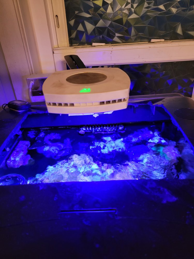 29g biocube tank no stand has a huge piece of rock covered in green star polyps 18 rose bubbles anemones a pair of blood orange clownfish that are a ocellaris clownfish and marron clownfish cross breed top cut open has a ai prime 16hd reef light and mount one of blue channels dont work but still has great color and PAR has skimmer 2 return pumps heater asking $400