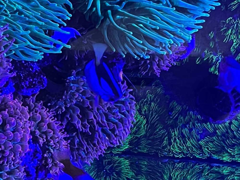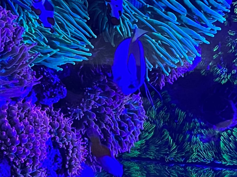 Purchased a tiny Hippo Tang, which grew much faster than expected and need to rehome to a larger tank. Has some discoloration hlle and needs a bigger home.
