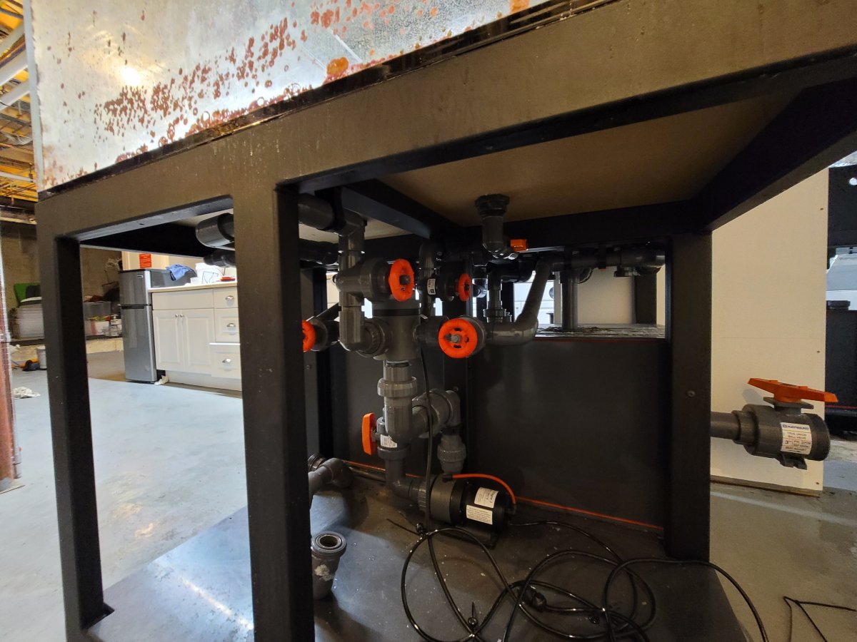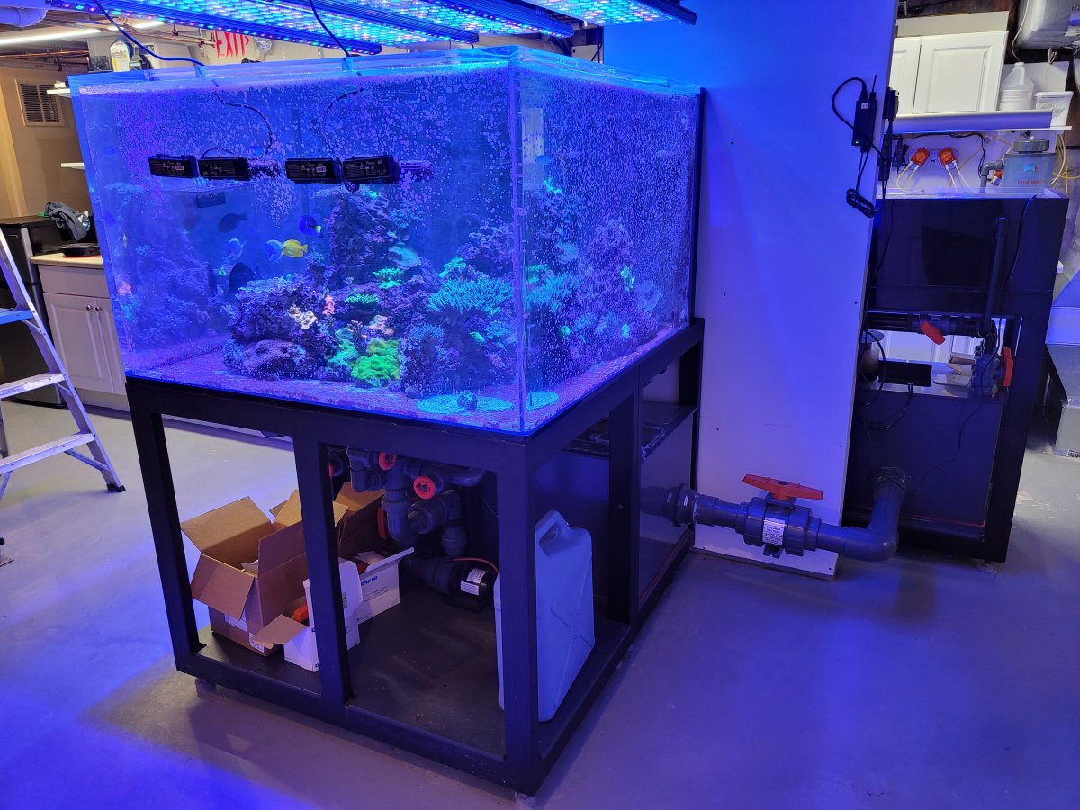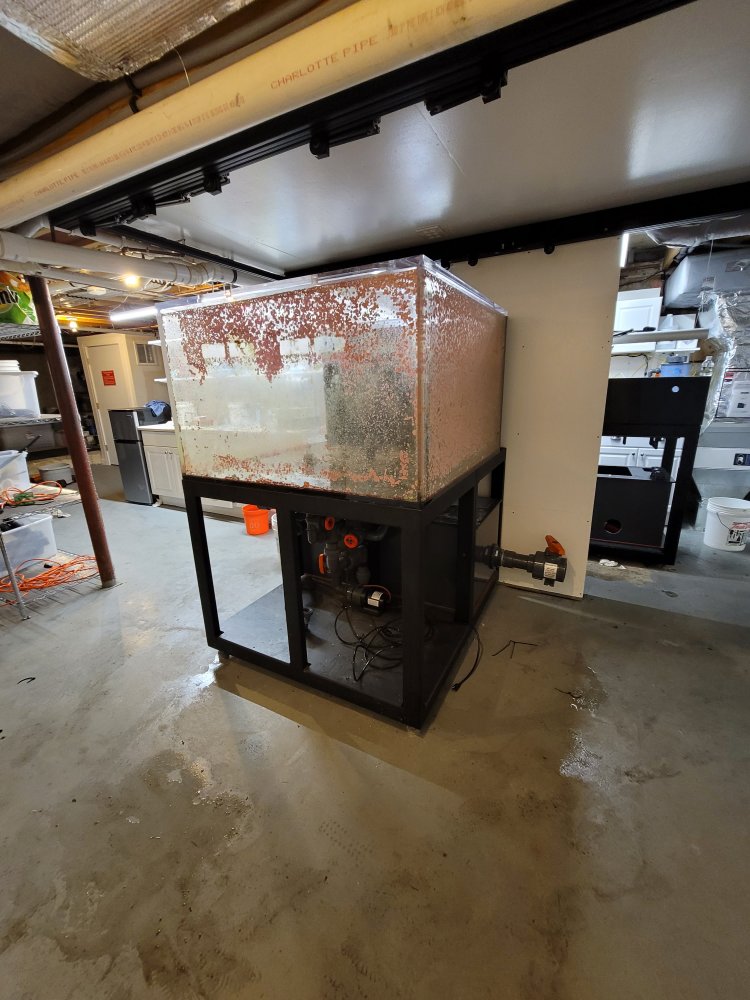 This tank is 48x48x30 with a aditional rear overflow of 47"x8"x30".