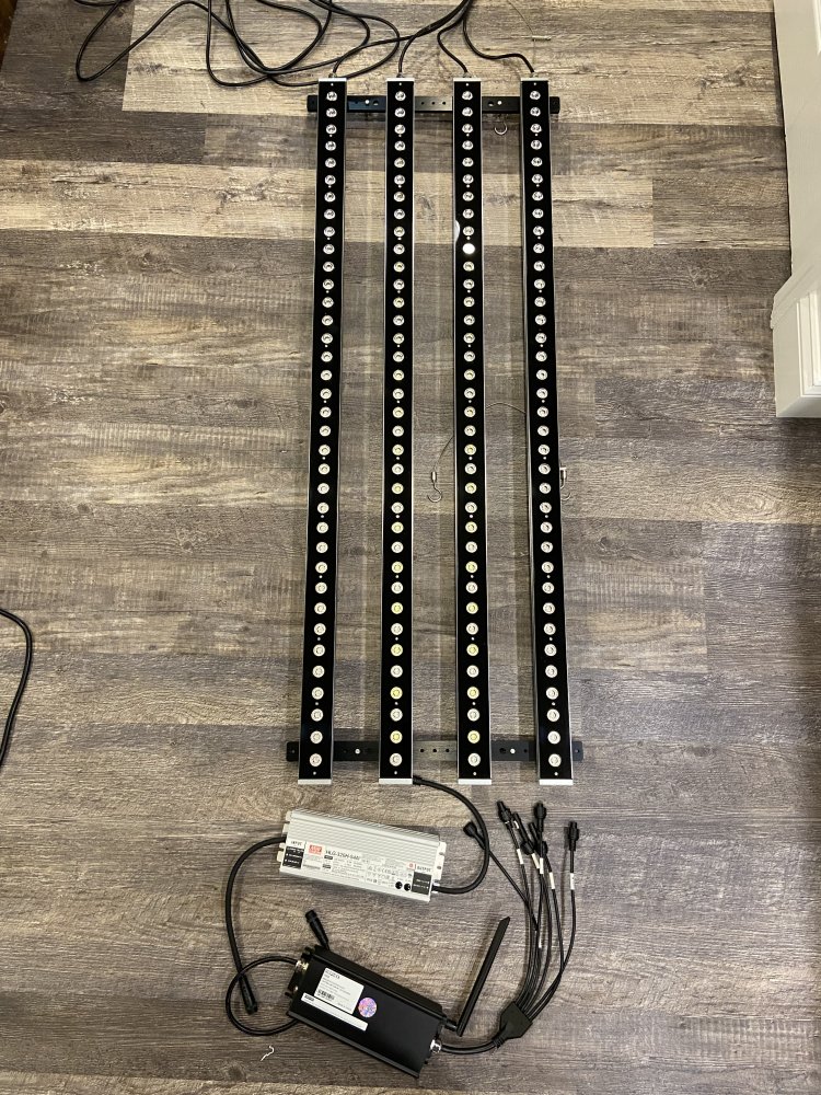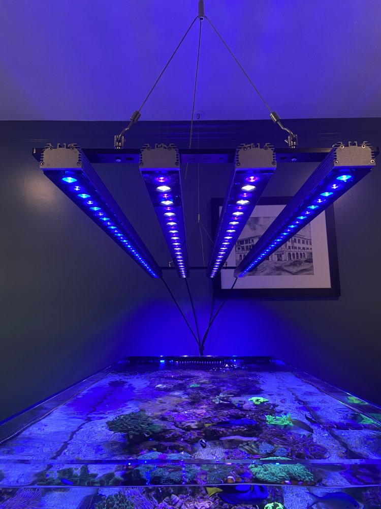 These are the newest model by Orphek with a single ballast and the new OSIX wifi controller that allows dimming etc. Moved to a different size tank so I cannot use it anymore. They're powerful enough for SPS etc. I had them running around 60-70% at 250-300 ish PAR.