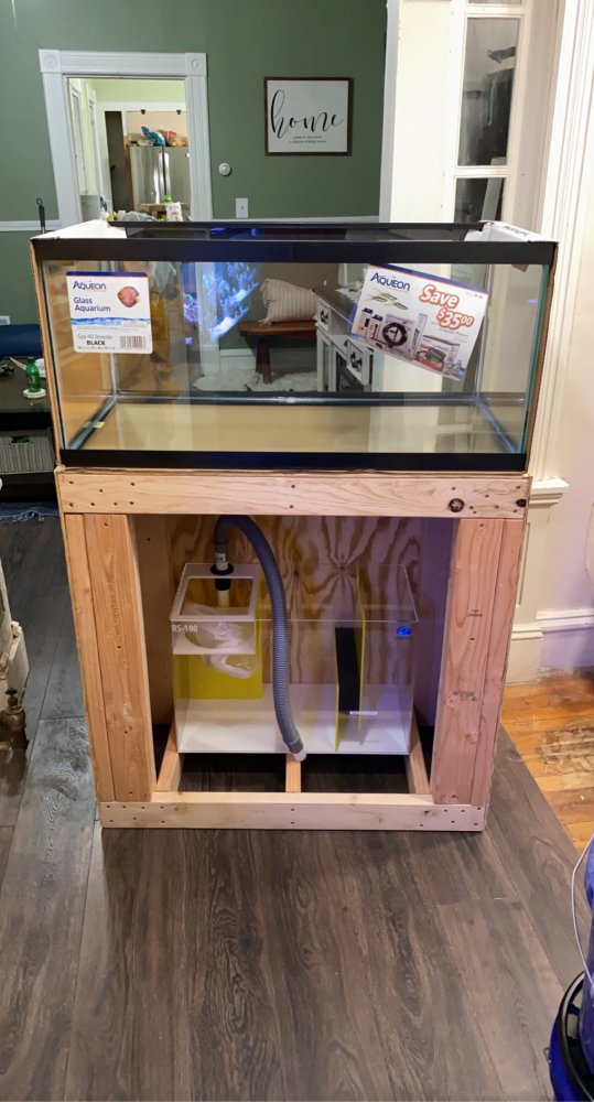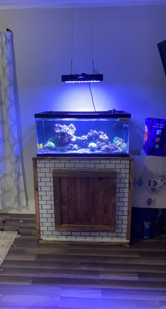 Hey everyone !! So I got back into the hobby and grabbed a 40 breeder stocked from my aunt for a good price she couldn’t keep it where she lived anymore . I set it up let it run for a few weeks then I got that urge to go deeper and the addiction began again I checked into the all in one units from Red Sea I was hooked on the lx 300 but they were on back order and I am super impatient . I decided to grab a new 40 breeder from petco ( dollar a gallon sale ) then I needed a stand which I was convinced on building one pics will be posted ! Here’s what I got