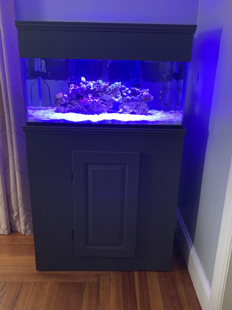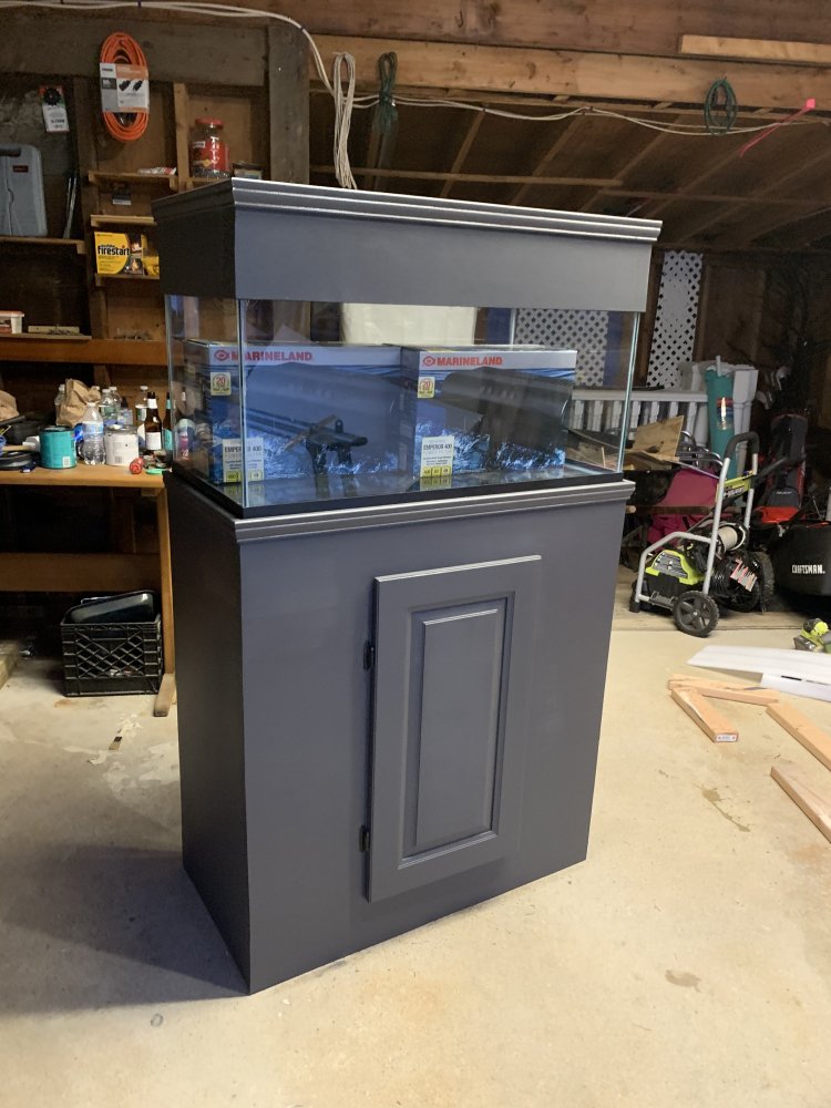 I then made a canopy for the top and made a custom light rack in the canopy to fit a reef breeder light. Attached are some pictures.