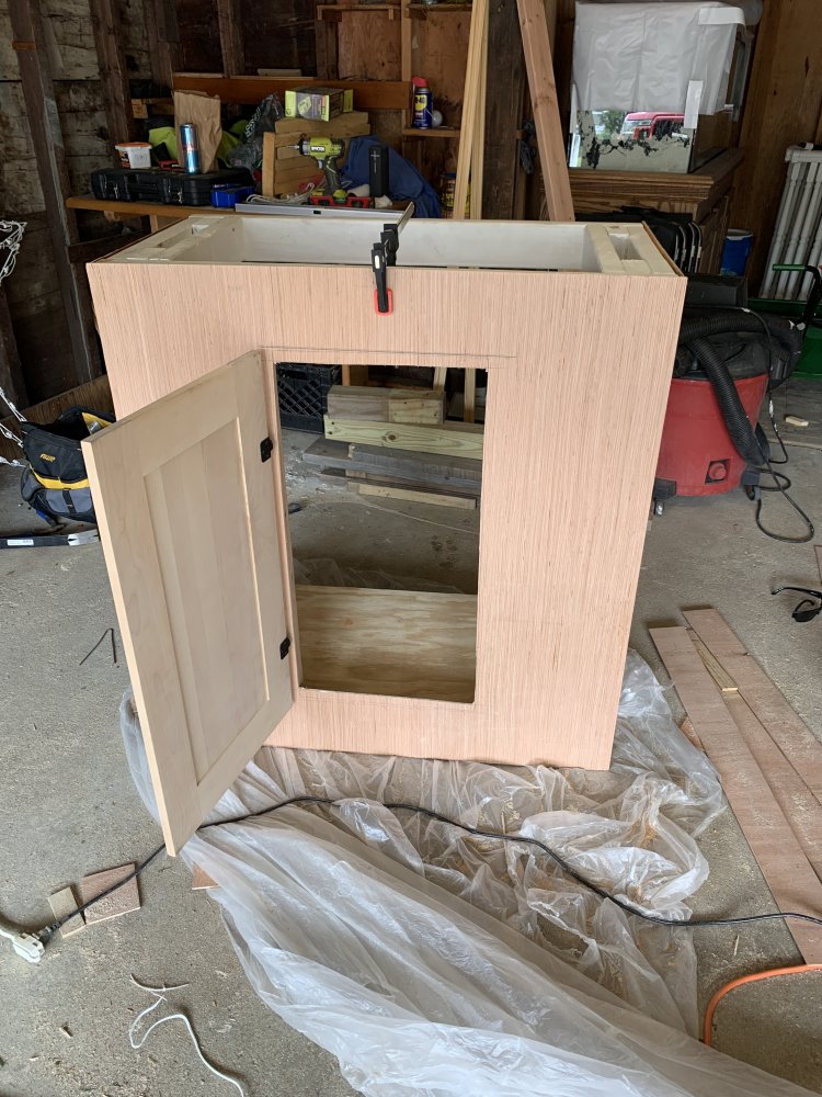 I used luon to cover it and used the easy way out by buying a door and just cutting an opening for the door.