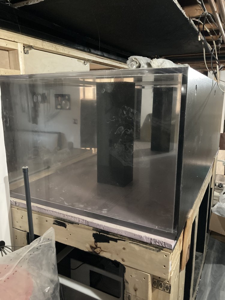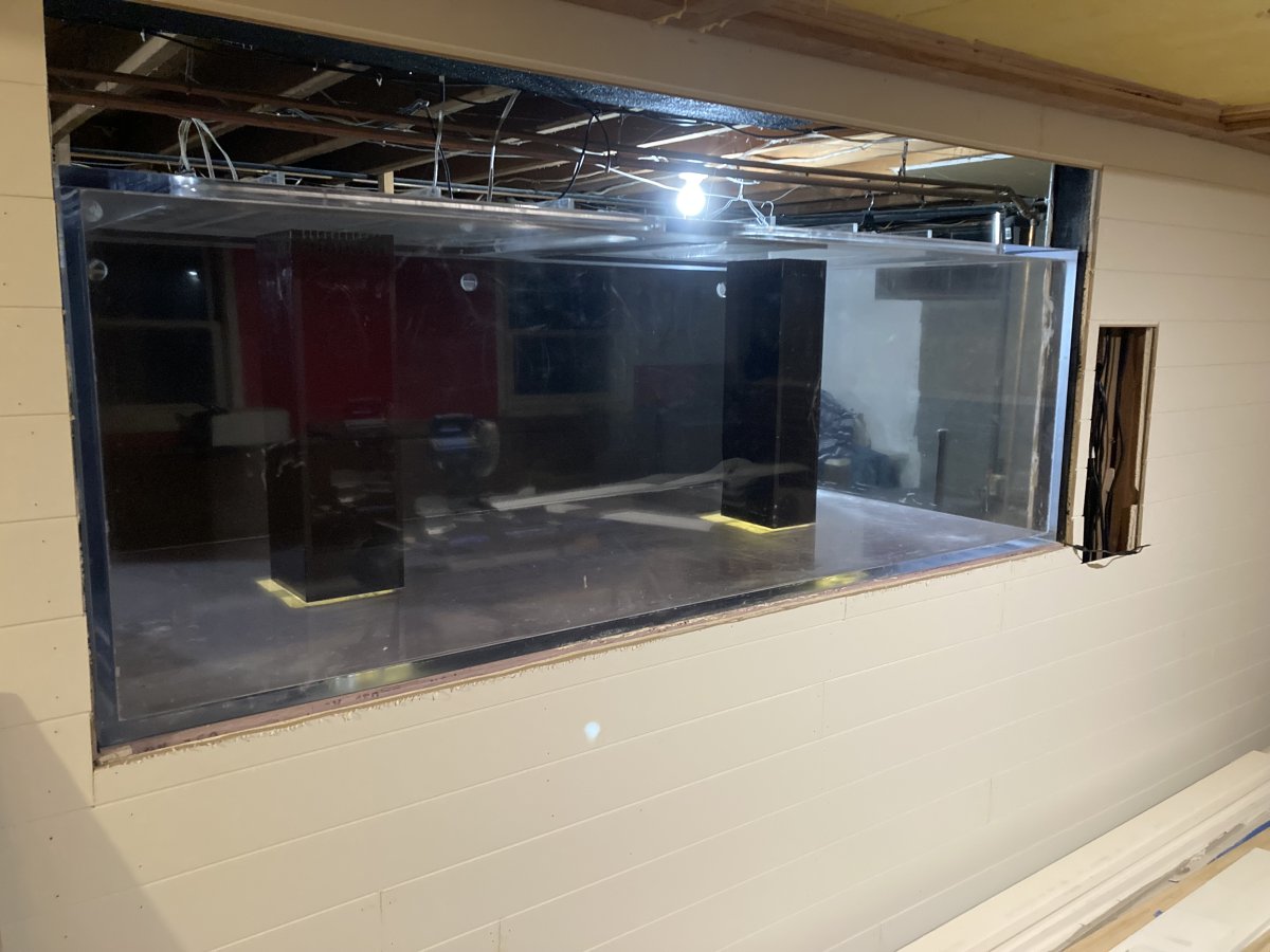 Aquarium has 2 new custom lids I also have cleaned and polished the inside and outside of the tank. Still has some minor scratches.