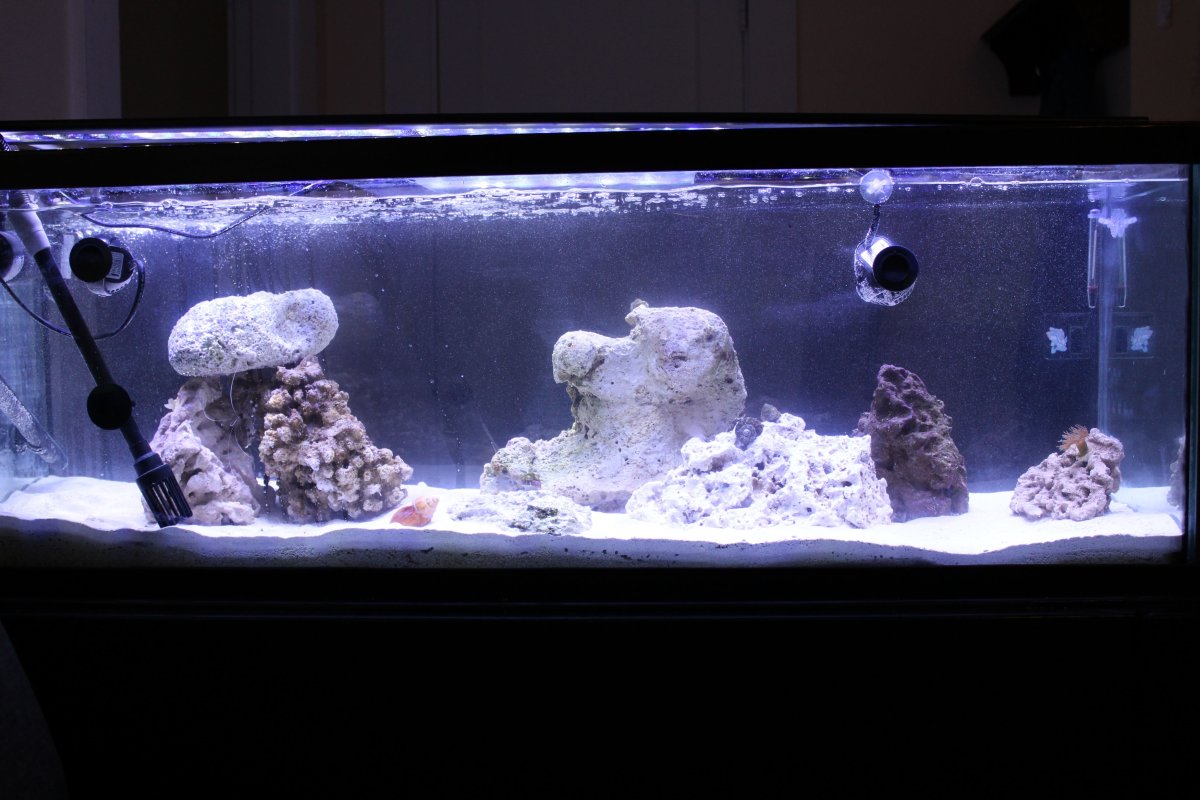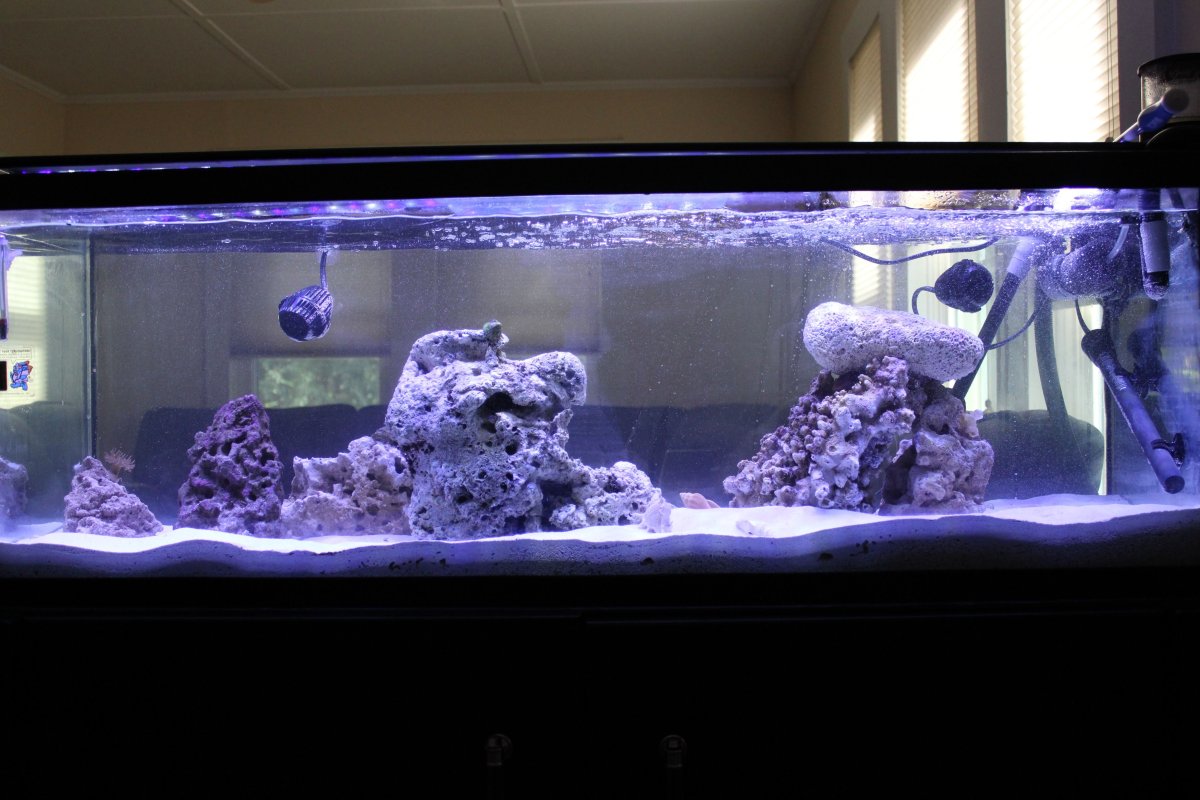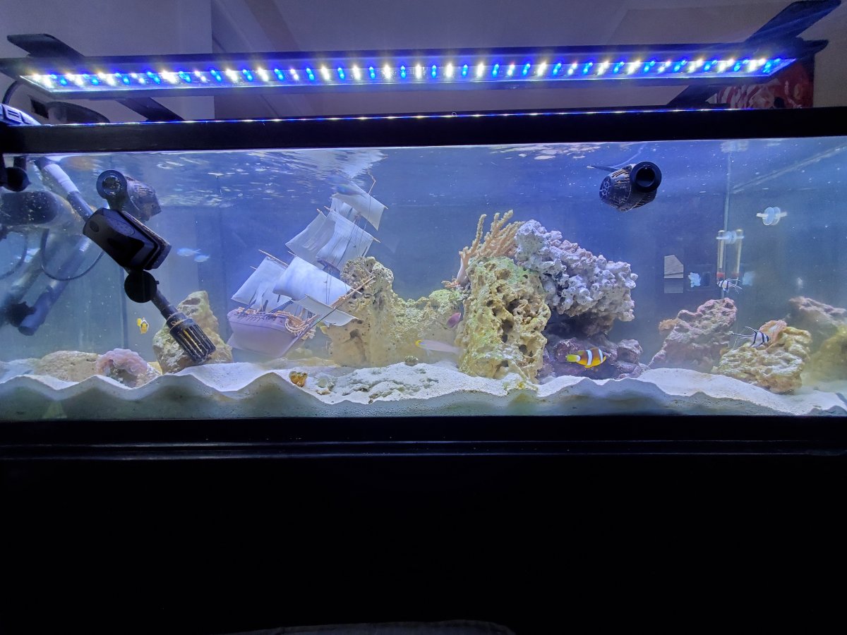 I refurbished the stand and it looks very nice. The tank is old but it's in decent condition. I cleaned out the silicone edges and put some in the corners. The tank is about 48" long.