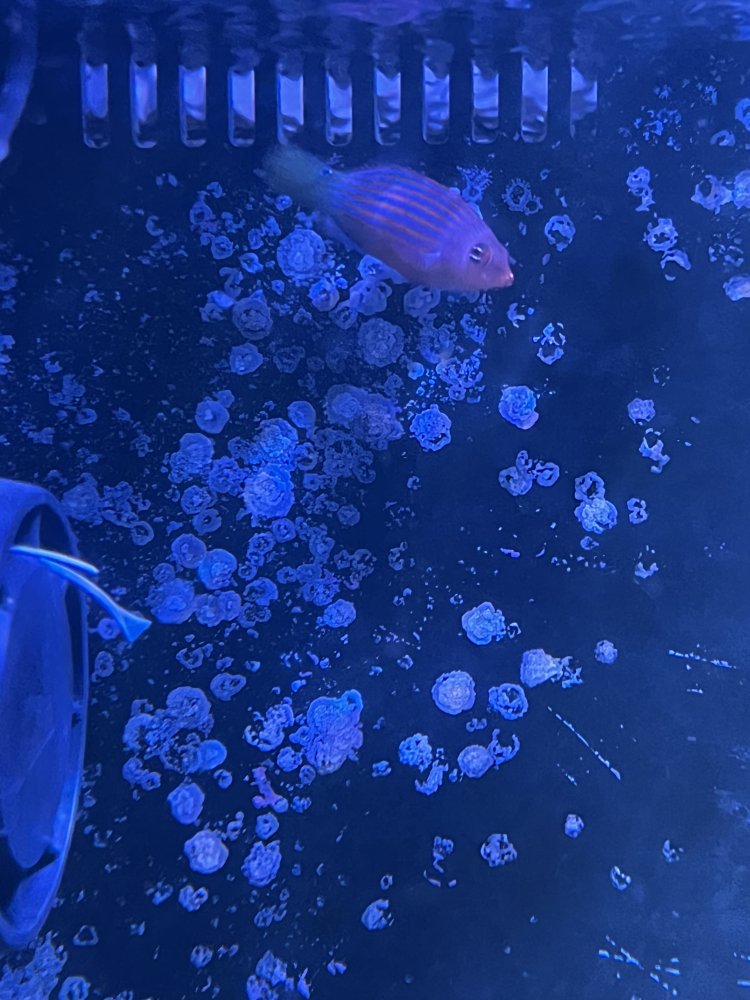M MCB85 Well-Known Member BRS Member Feb 9, 2024 #1 Small fish. My kid wanted to get it and I didn’t do my homework. Hogfish is bullying the wrasse. Will trade for a frag or what I paid for 38$. Thanks!