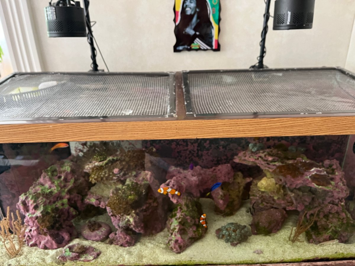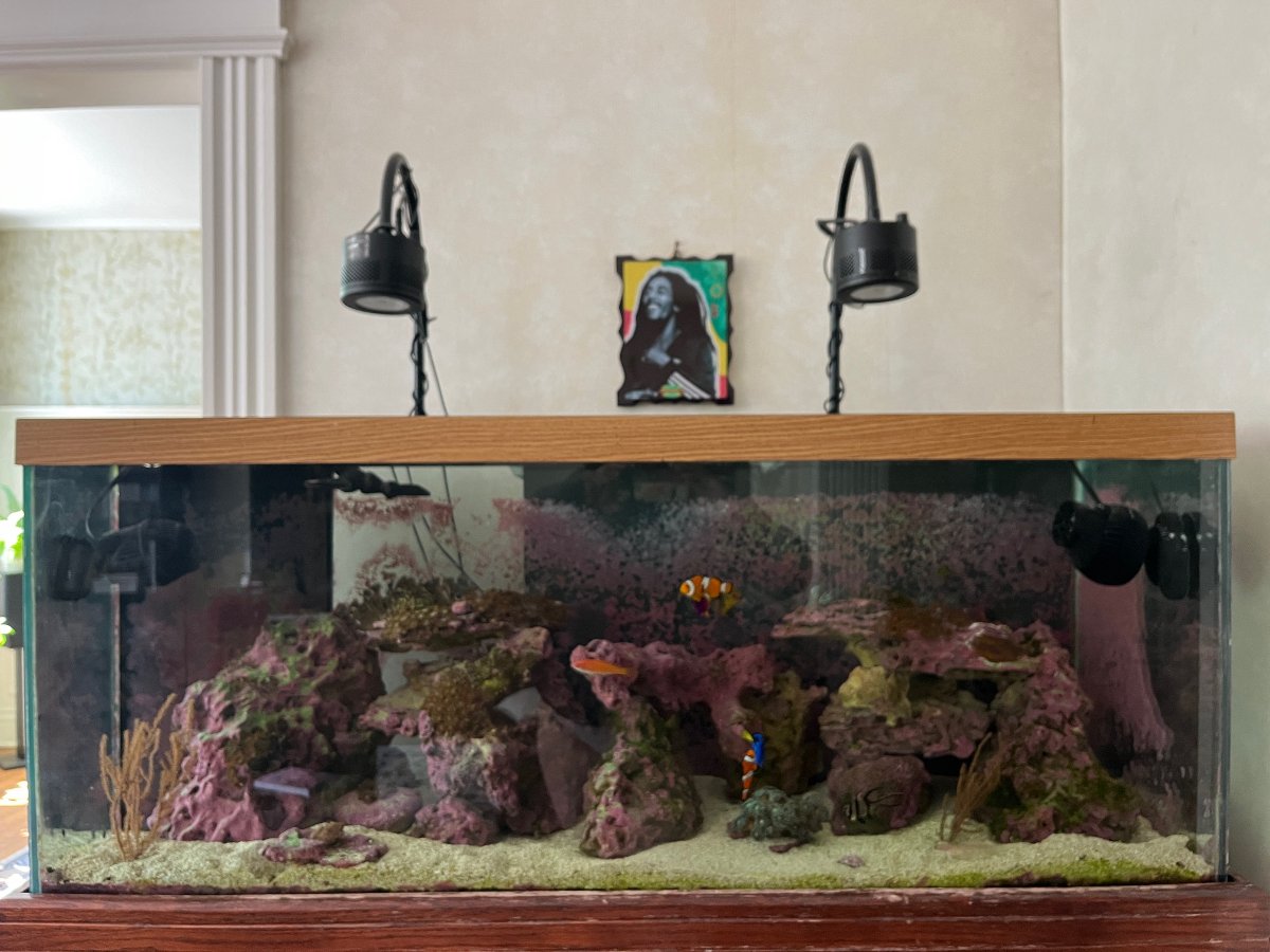 This package of livestock, equipment, tanks and furniture is potentially an EXCELLENT opportunity for the right person. With a little skill and work, this could easily be turned into a beautiful 112 Gallon Display Tank and Stand, Reef included.