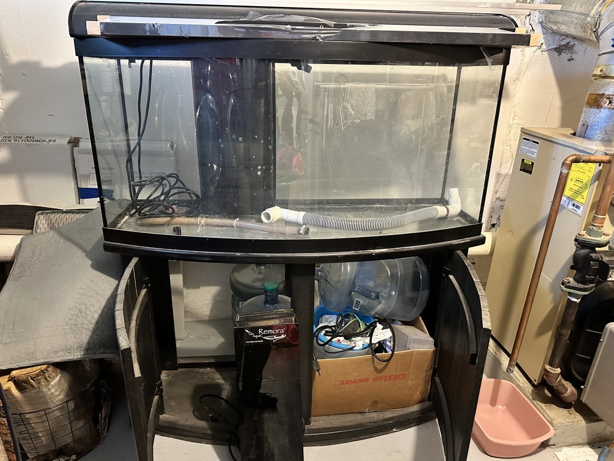 72 Gallon Bow Front aquarium. Tank is reef ready. Plumbing will need to be done to your specs. Comes with stand and MH T5 combo light fixture (not sure whether bulbs are good) have not powered up the lights in years. Light stand is broken but can be purchased on Amazon or hung using ceiling wires. Also comes with Remora protein skimmer with pump. Also have a box of misc. items (mag drove pump). Looking for $100 for all of it.