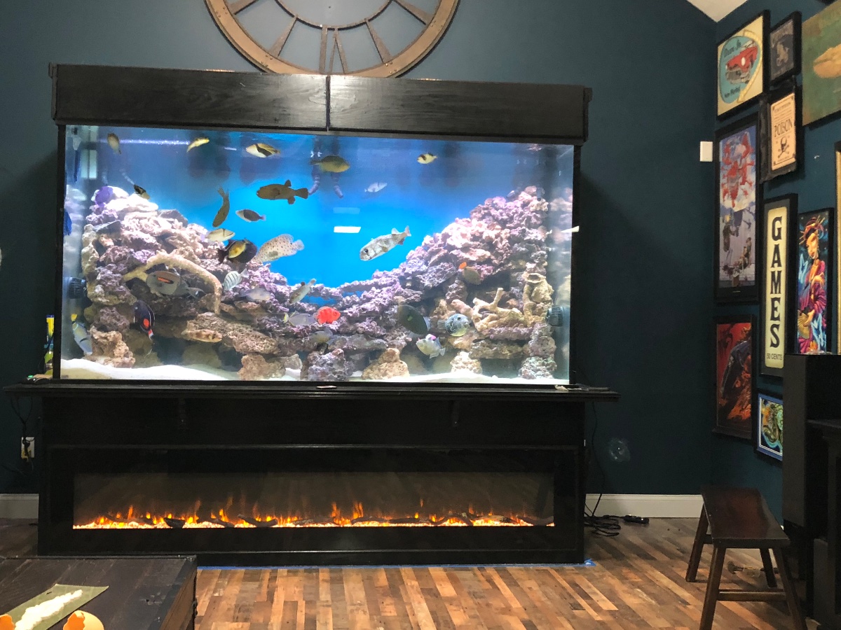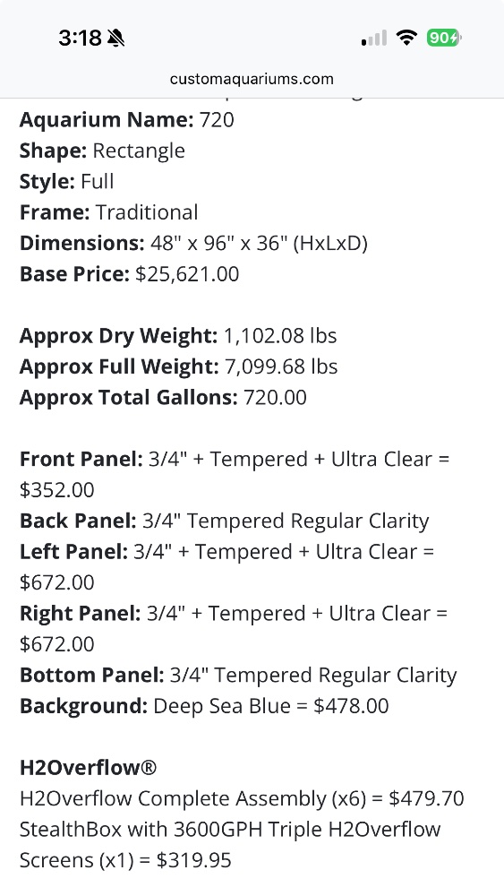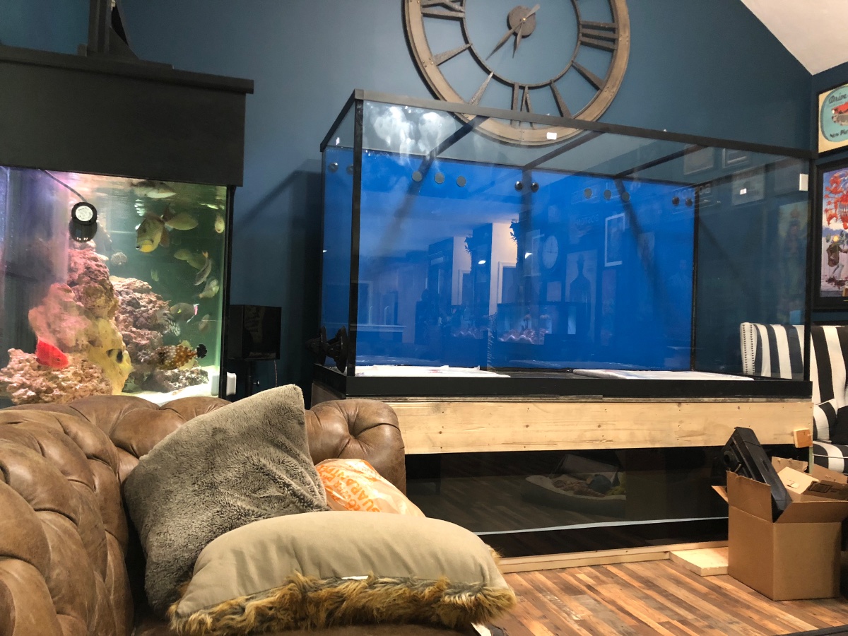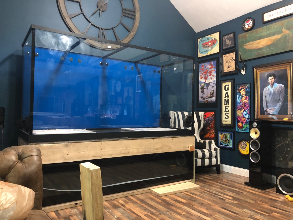 96” long x 36” deep x 48” tall 720 gallon custom aquariums massive show tank for sale. Comes with custom wood stand and canopy, and 150 gallon glass sump.