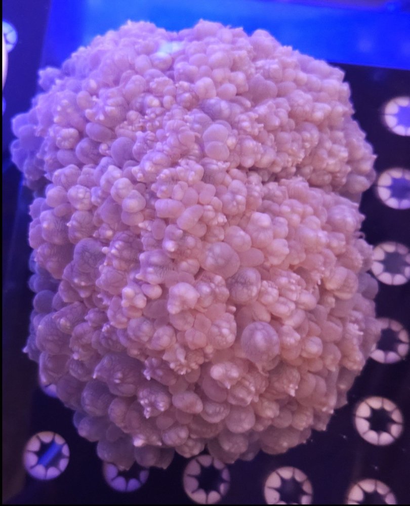"Plerogyra sinuosa is a jelly-like species of the phylum Cnidaria. It is commonly called ""bubble coral"" due to its bubbly appearance. The ""bubbles"" are grape-sized which increase their surface area according to the amount of light available: they are larger during the day, but smaller during the night, when tentacles reach out to capture food. This species requires low light and a gentle water flow. Common names for Plerogyra sinuosa include ""grape coral"", bladder coral, and pearl coral. According to the IUCN, Plerogyra sinuosa ranges from the Red Sea and Madagascar in the western Indian Ocean to Okinawa and the Line Islands in the Pacific. Bubble coral needs sufficient space because they possess long, stinging tentacles.This type of coral does better in areas where the water is relatively still. Too much water movement causes bubble coral to keep their vesicles closed, and this will eventually kill them. Bubble coral eats shrimp or small bits of clam and you should feed them one or two times per week.“