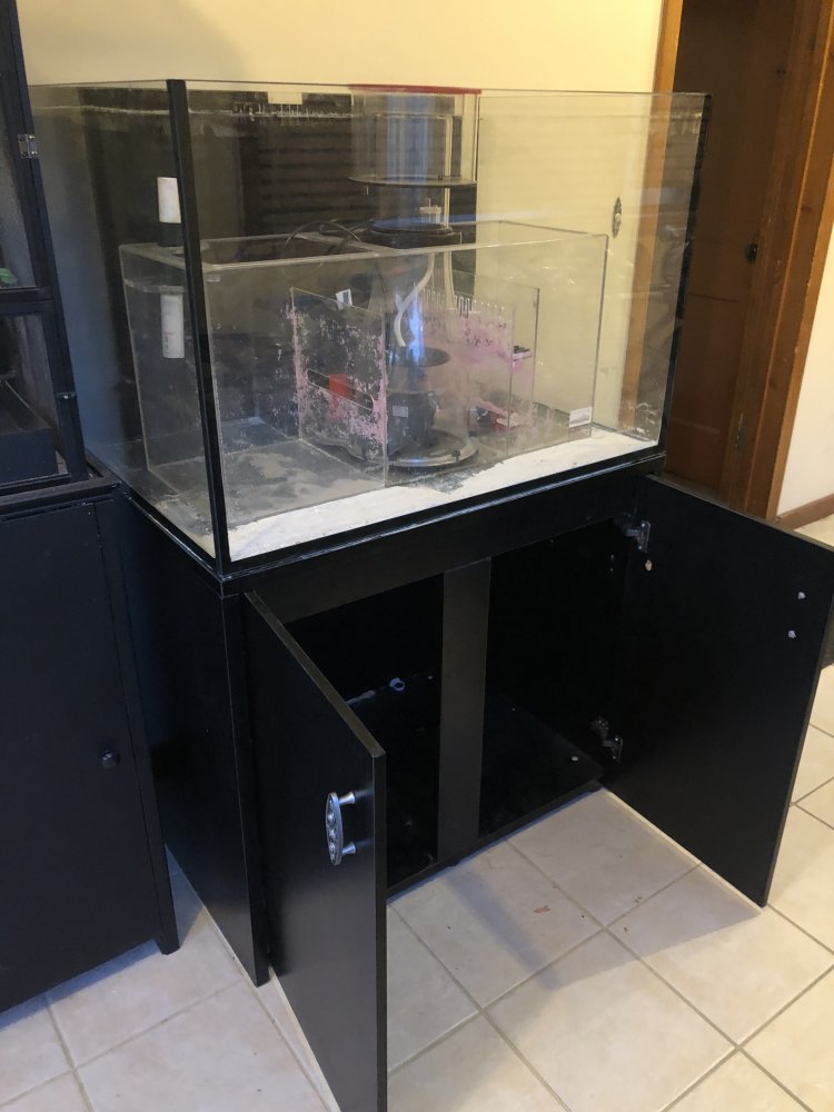 - SCA 90g rimless 36”x24”x24” with black stand. Drilled thrice in the overflow for your silent herbie drain setup and comes with overflow plumbing and bulkheads.
