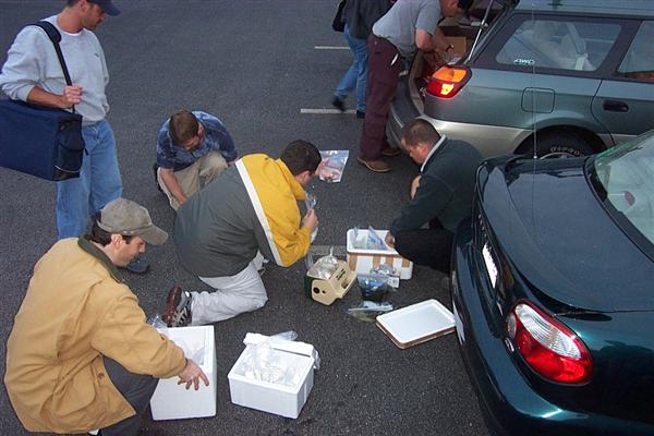 A frag swap in the parking lot at the Seekonk meeting at the Coral Reef Aquarium store. (When frag swaps were small enough to be shot with one picture! lol) Left to right..Chuck Smith, myself, jimmyj7090, jake, and Mike Roby (Aqua Addict).