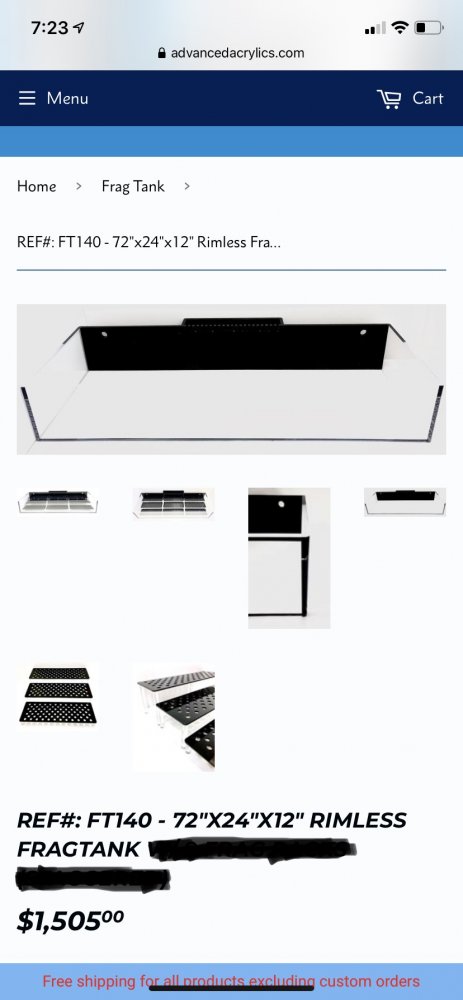 Selling a 90 gallon advanced acrylic frag/lagoon style tank Model# FT140. Will include new never assembled mesh screen top. $850 and located on Cape Cod