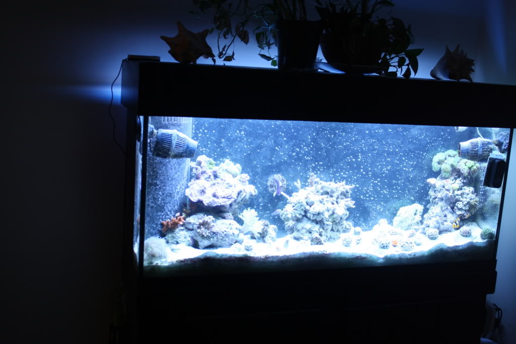 Getting some crazy polyp extension but the coloring on the SPS are still a little browned out :( Slowly acclimating the corals to the LED lights... I'm up to about 5 or 6 hours and bringing it up about 30 mins more a week... Colors are slowly slowly getting their color back...