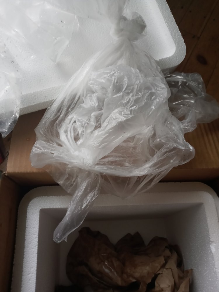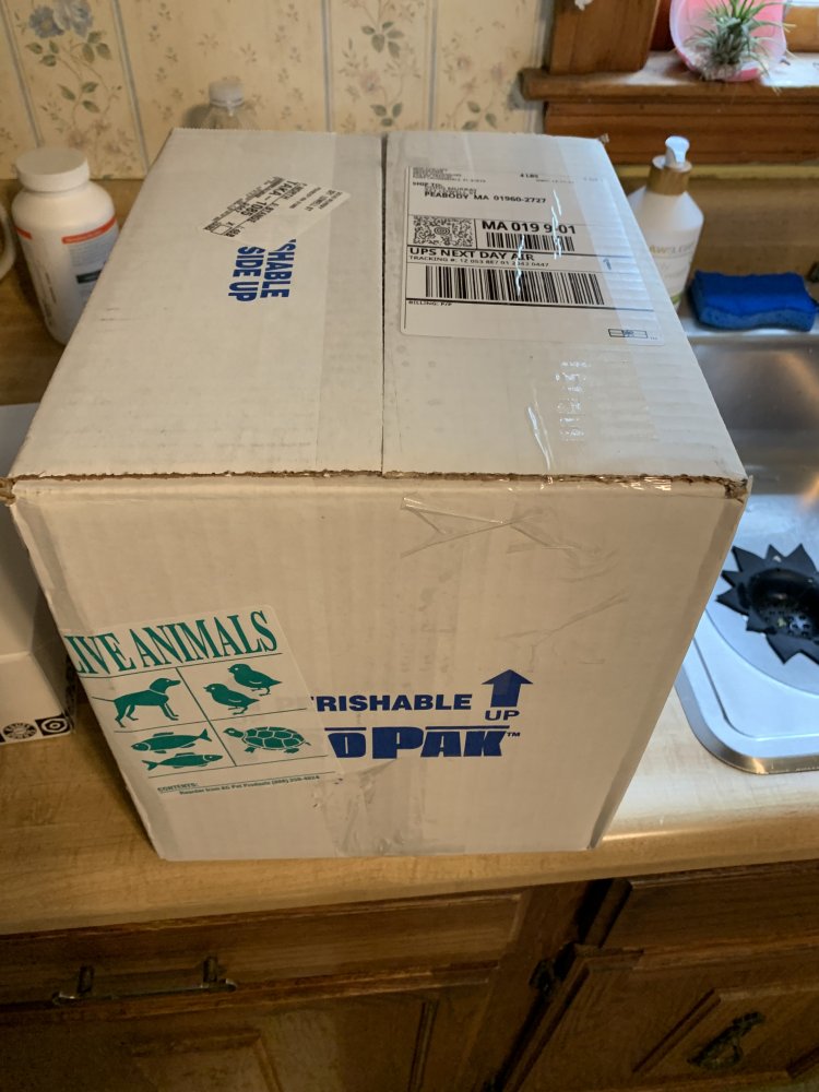 Figure id show you all how these were shipped. No were on box does it say LIVE ANIMALS bags broken. No heat pack box soaked inside. No tape to hold styro lid on.