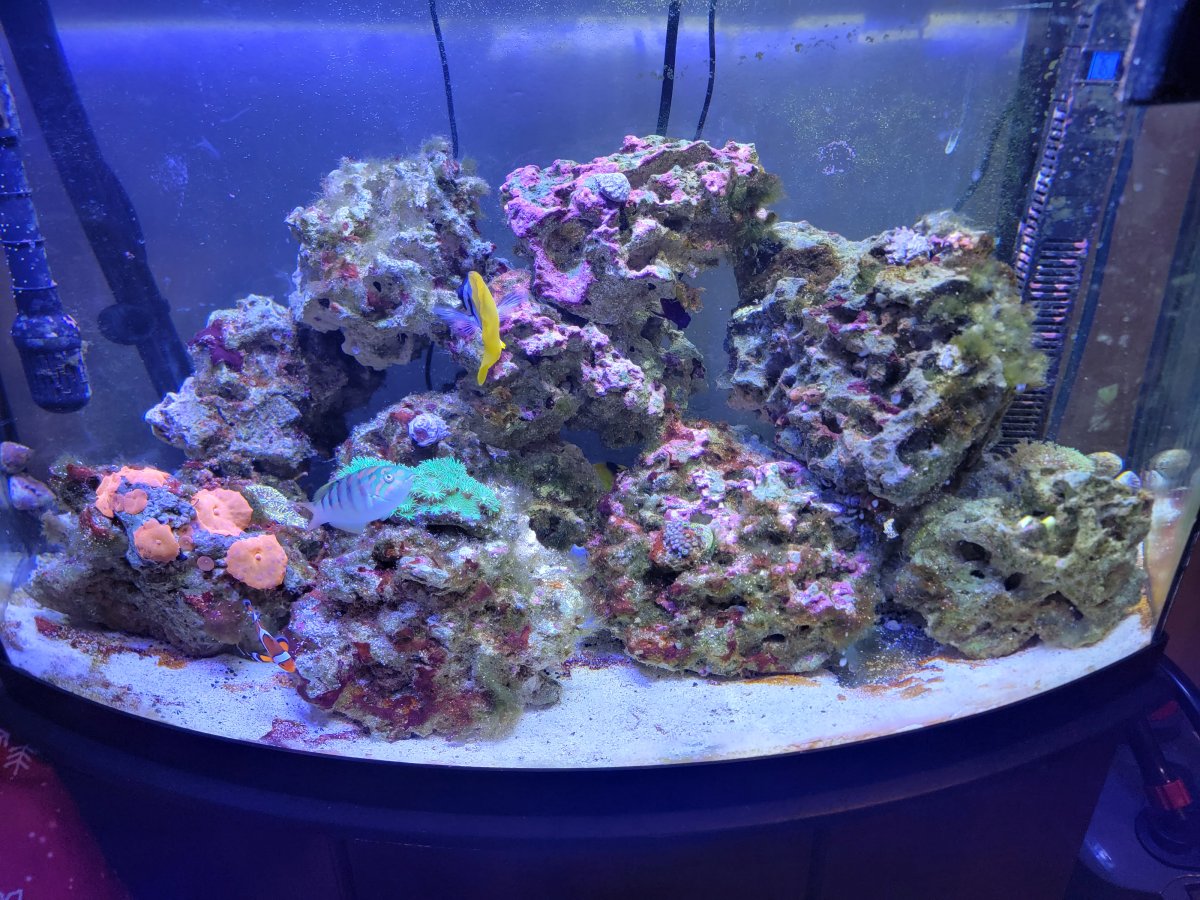 We have a 36 gallon tank. We initially used tap water to start. We have had it up and running for over 6 months now. We have green algae all over the live rocks and a red type algae in the sand. We also have aptasia in the back of the tank. The aptasia is only 1 so far. We have about 10 snails (turbo and trochus), 10 blue legged hermit crabs, a fox face, Hardwick wrasse, bi color angel, royal Gramma and a clown fish. How do we get rid of the aptasia and both algae types.