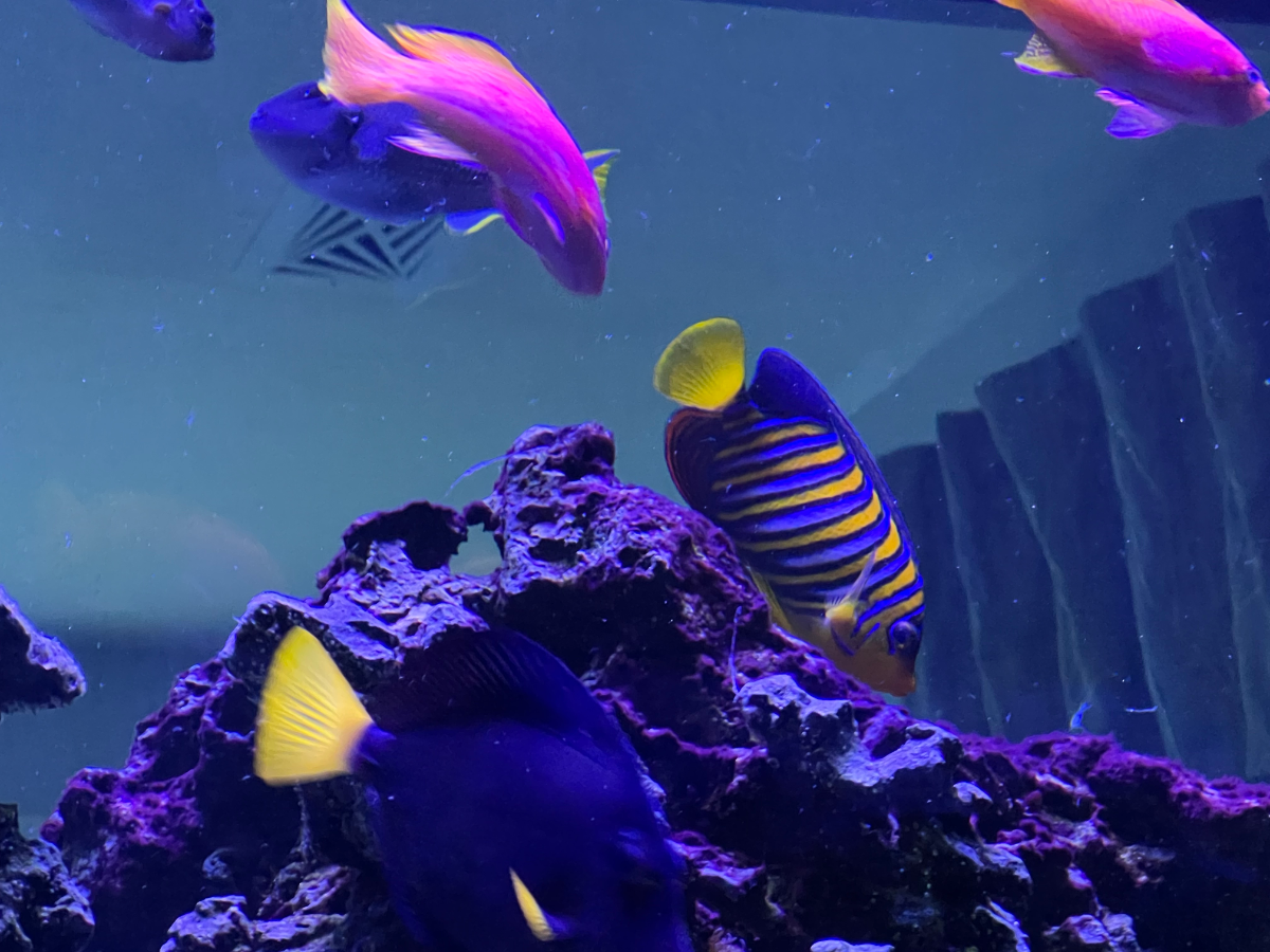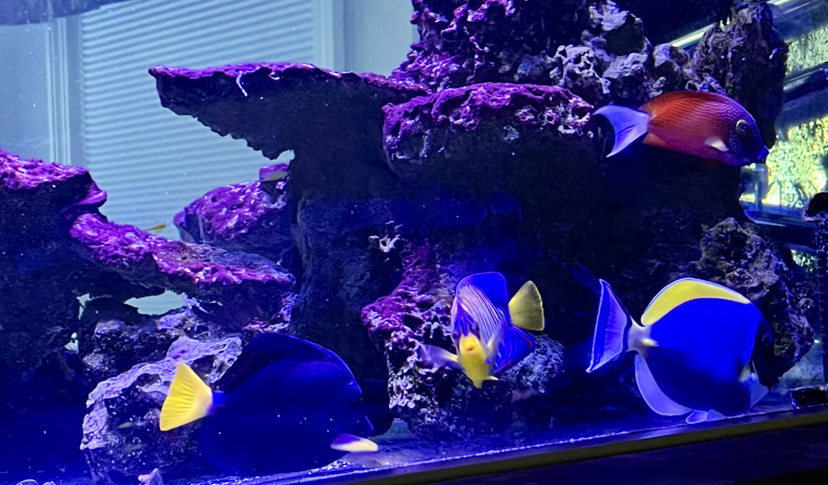 Getting tangs and angels to coexist can be tricky—these were introduced together as juveniles, which is why they’ve remained peaceful.