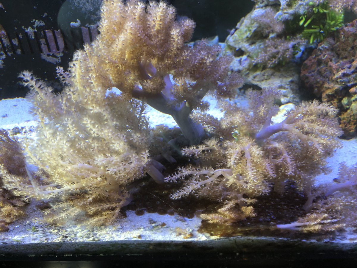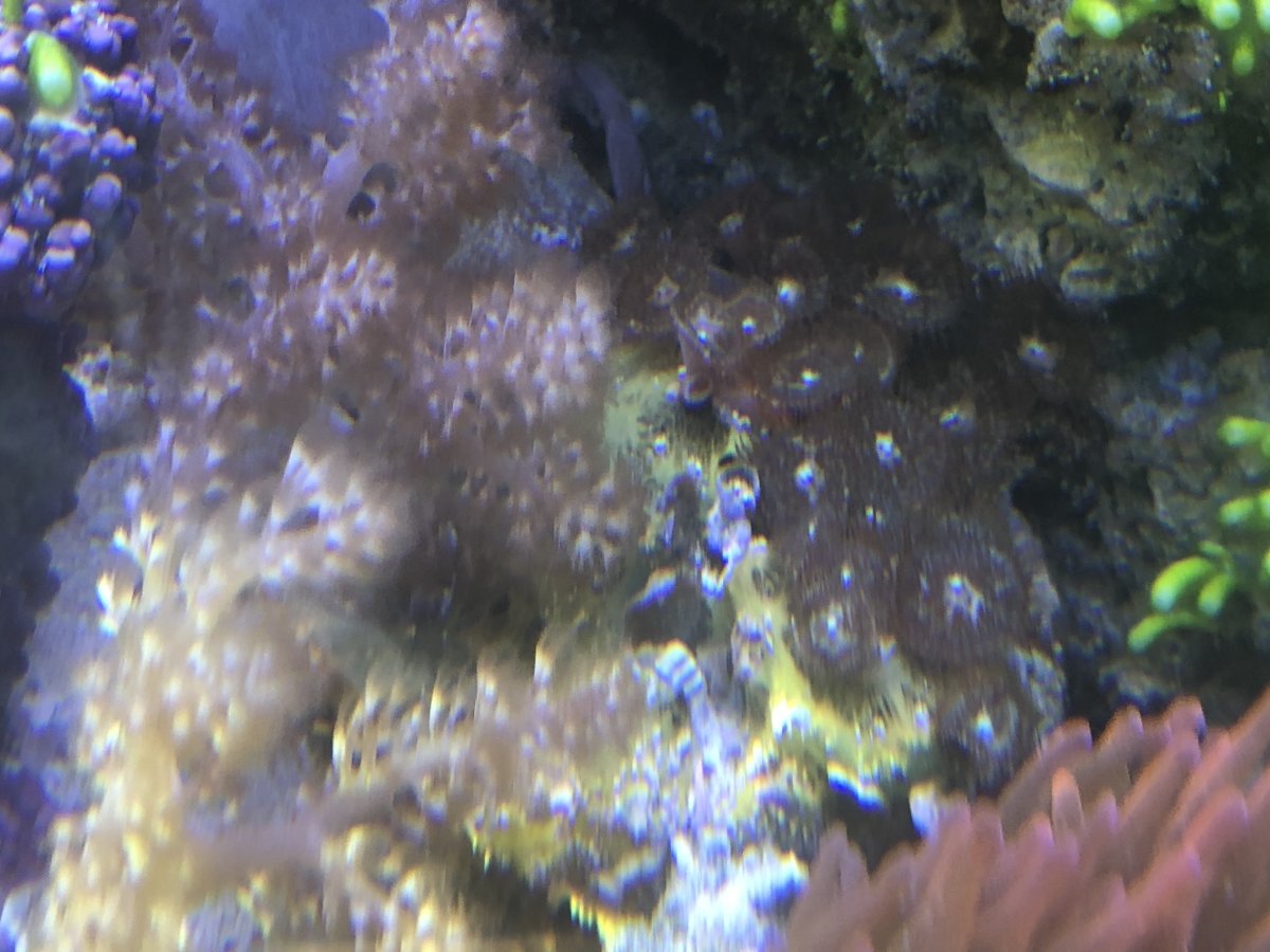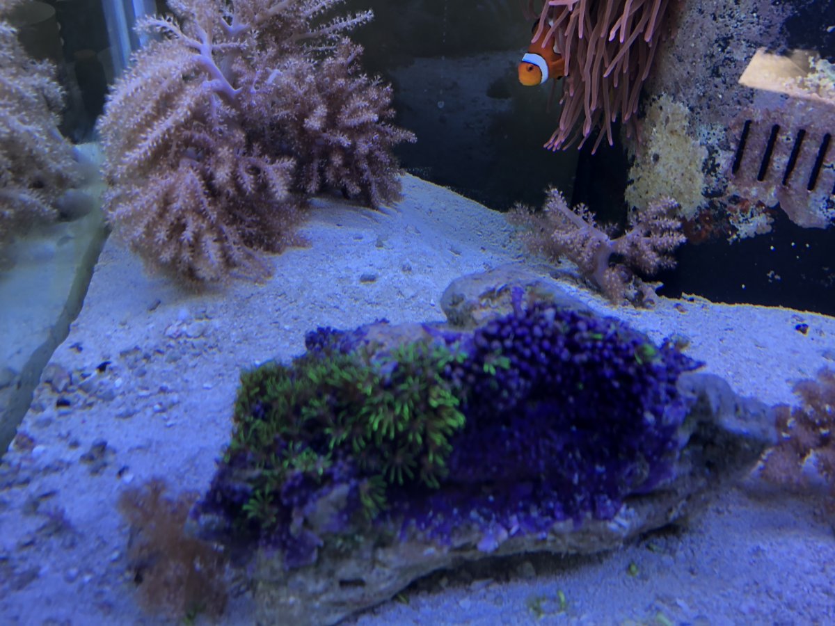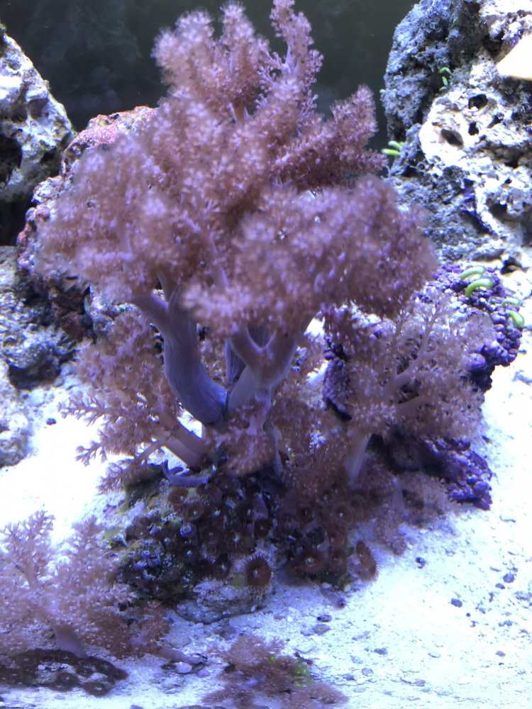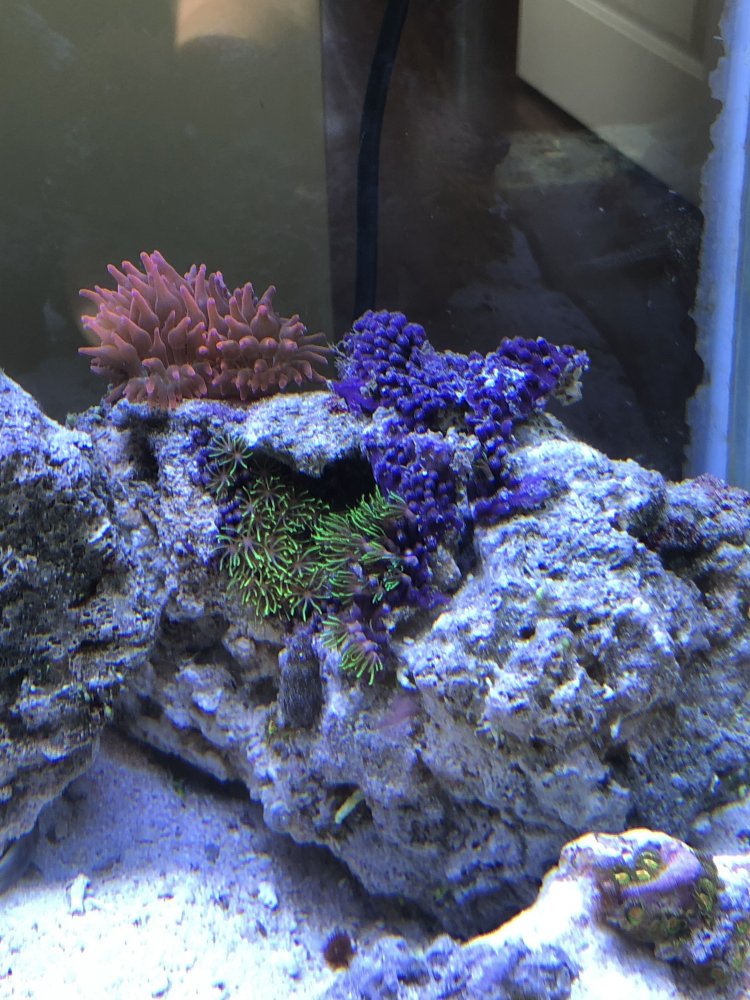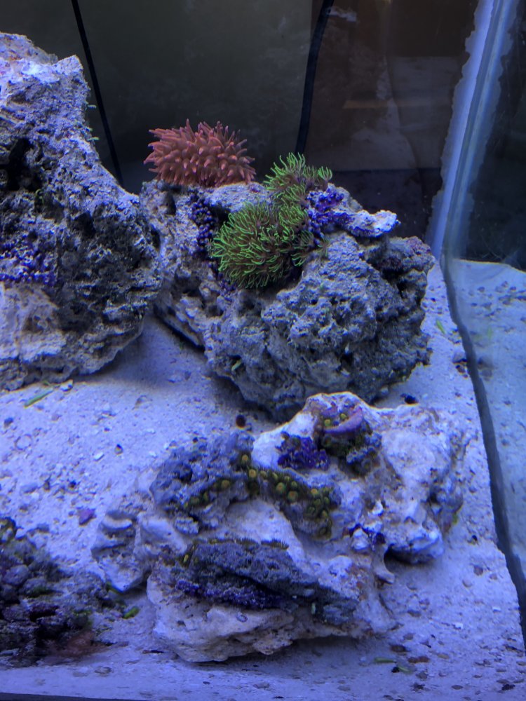 Kenya tree, GSP, Zoa, blue legged hermits, brittle star, 3 pink bubble tip anemone.