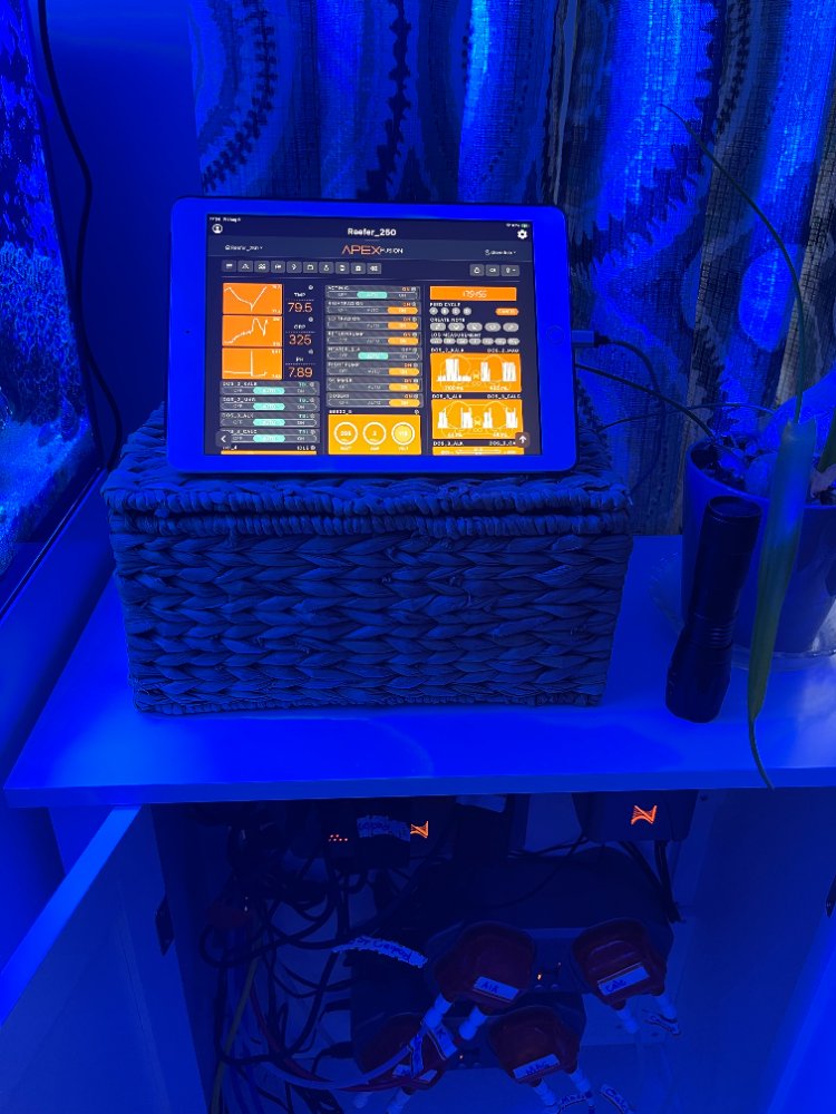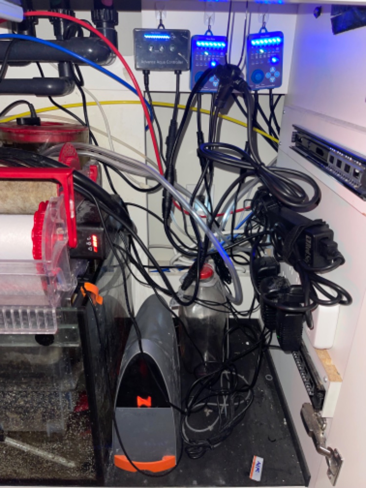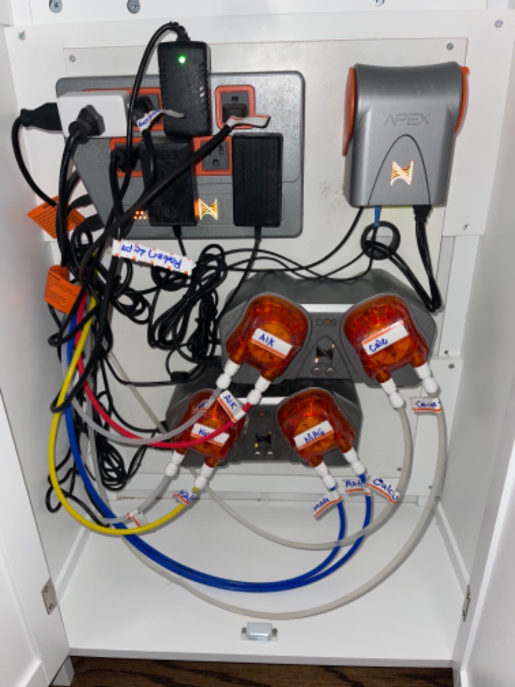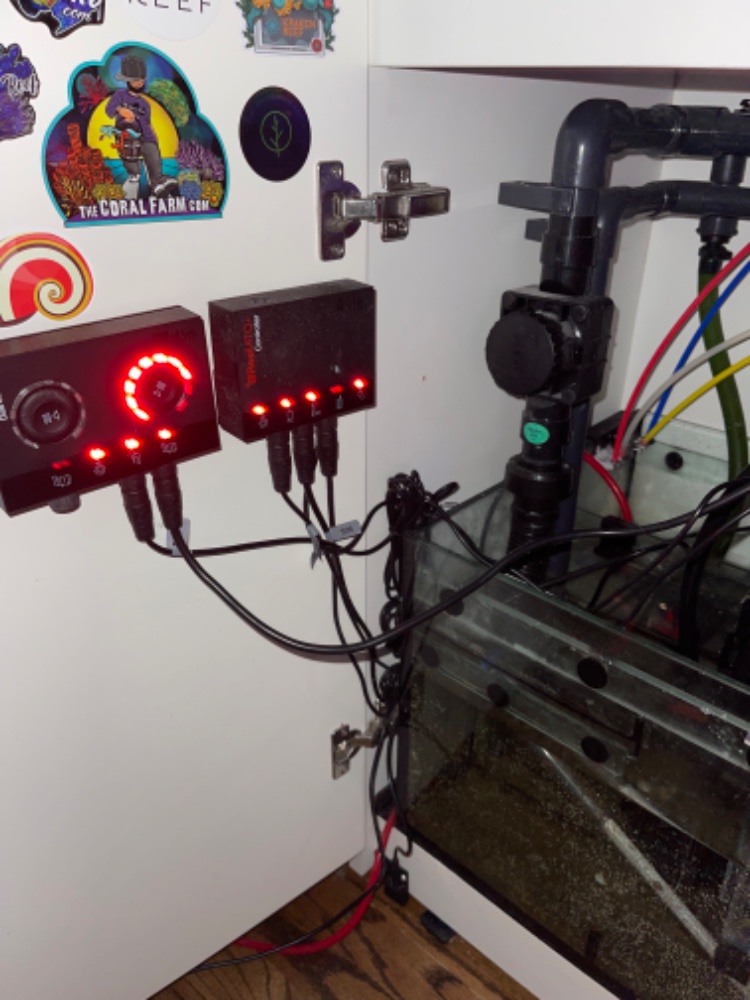 For the last couple years my apex controller and components have been under the stand cramped on a board that rolled out but it was a spaghetti mess. I ended up getting the ambitious idea to set up a cabinet to accommodate the apex. After about 3 hours of disconnecting, retrofitting a board, cutting, drilling and rewiring… I finished. I think it came nice and clean. I couldn’t be happier. I also added some John quest to fittings to the doser to convert to 1/4” ro tubing rather than the Neptune tubing. The project was definitely worth it plus now I have some additional storage under the stand.