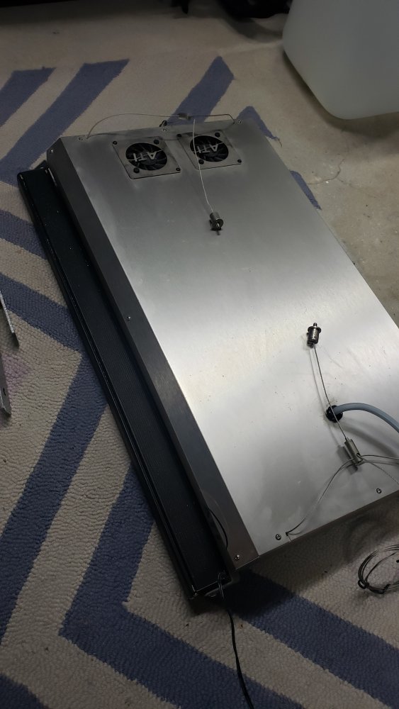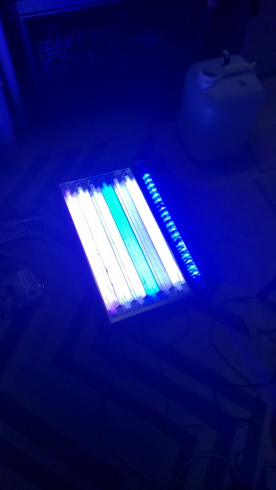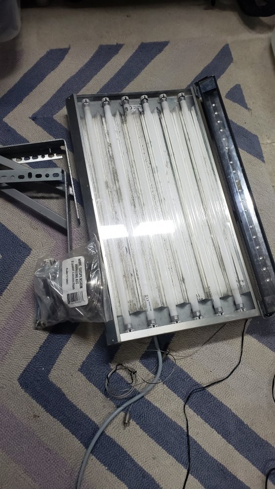 Older setup with some corrosion on the reflectors, but plenty of life left. Cosmetic condition is only ok, but perfectly functional. Does not include bulbs, but does have the hanging kit. Would also trade for higher end sps or scans.