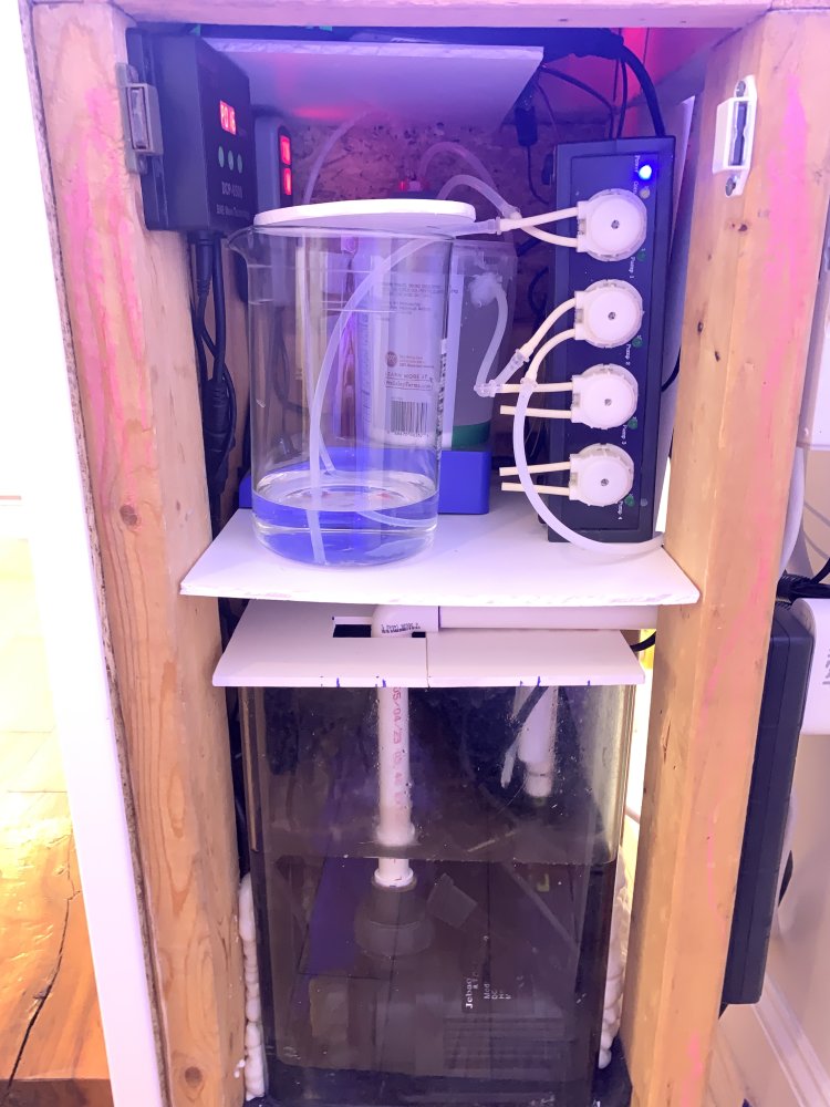 A jebao 6500, viparspectra led and two 100 watt heaters run the show. One primary, one on standby, run by different control systems.