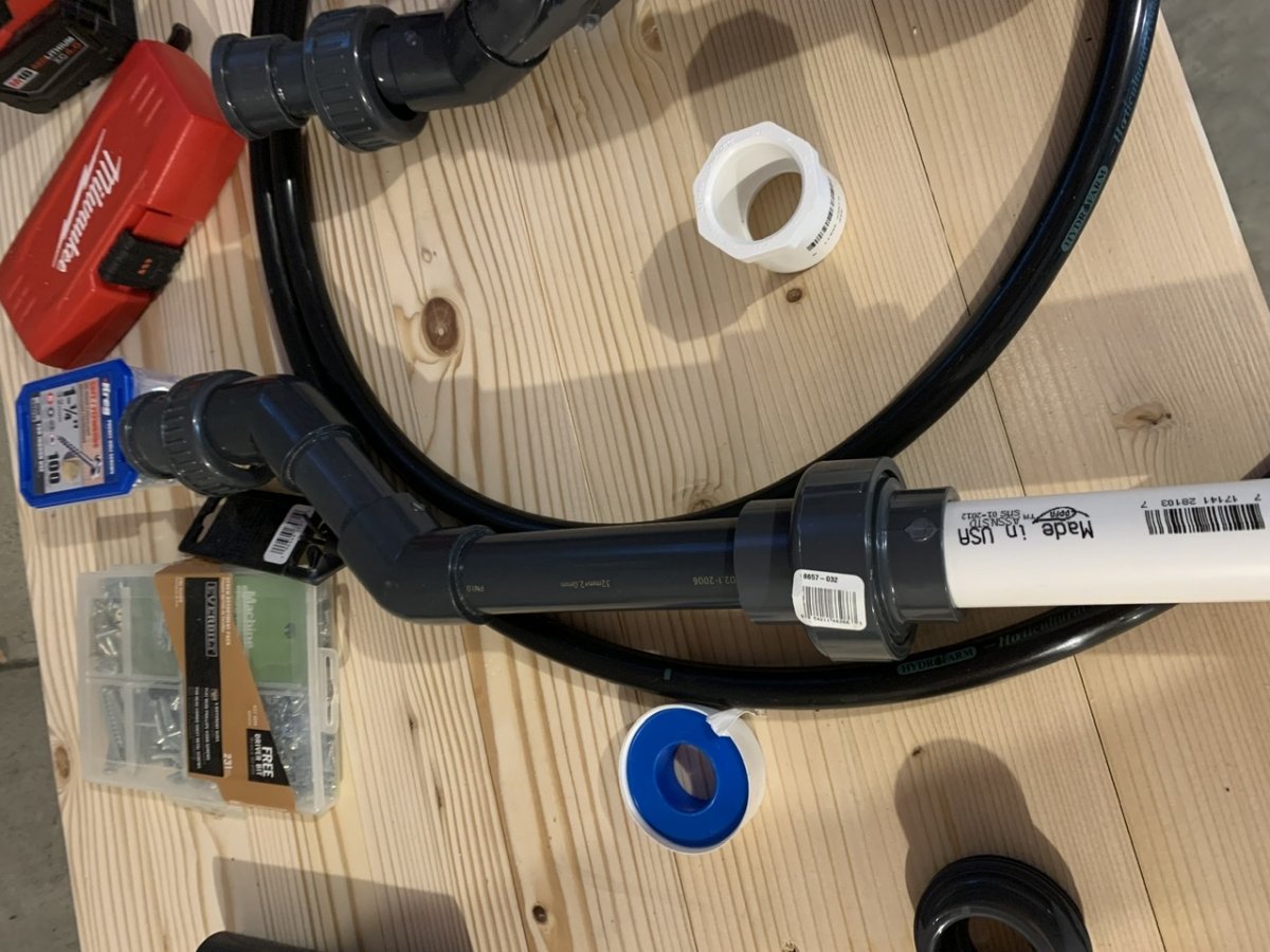 Finished the damn plumbing on this tank last night. If you look closely you can see the hole behind the 1" 90 as I wanted a super clean look, but there was no way for me cement the connections if I continued the plumbing down the wall as there's only about 4-6"'s between the wall and the tank.