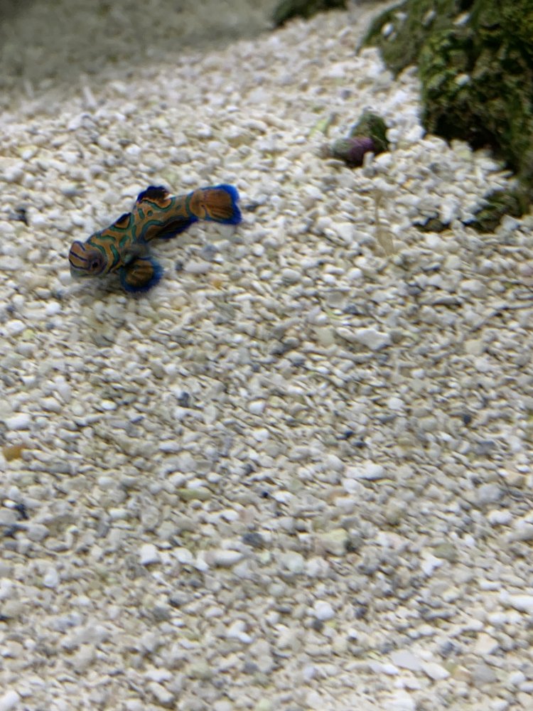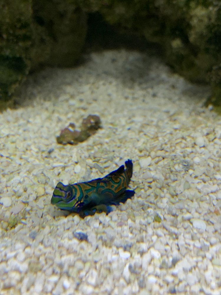 I purchased a pair of Biota Mandarins. These two mandarins male and female are an inch or smaller. The female barely makes three quarters of an inch. They can be lost in the rocks of my display rather quickly. I was a little scared about adding them to my tank because I was worried about tank mates swallowing them whole. But mandarins taste pretty bad to other fish from what I read. But anyway after reading up and doing some research I was ready to introduce them to my reef tank. I’ve been culturing copepods and phyto for some time and felt that my reef tank was ready. The Mandarins have made it through the first week in my display and my other fish pay no attention to them. They’re pretty fun to watch as they’re so small but actively hunting for copepods all the time. They’re always swimming close to each other. These guys being captive bread also eat pellets and cyclops and other fresh foods. I basically feed them like I target feed some of my corals. Anyways just wanted to share. I’m sure I’ll be sharing some more of these two soon.
