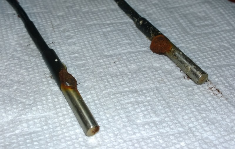 Was doing my water change today and cleaning all the pumps, along with the sump area, when I happened to see my temp probes from the Arduino build were all bubbled/rusted.