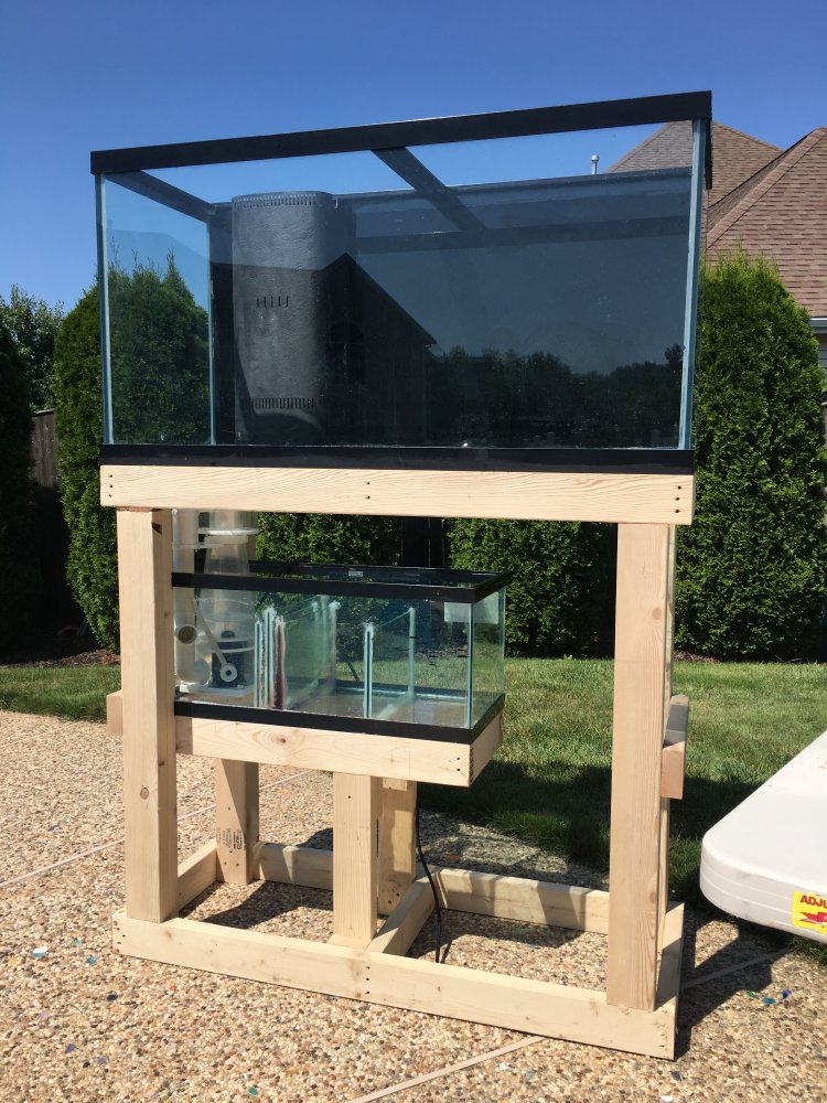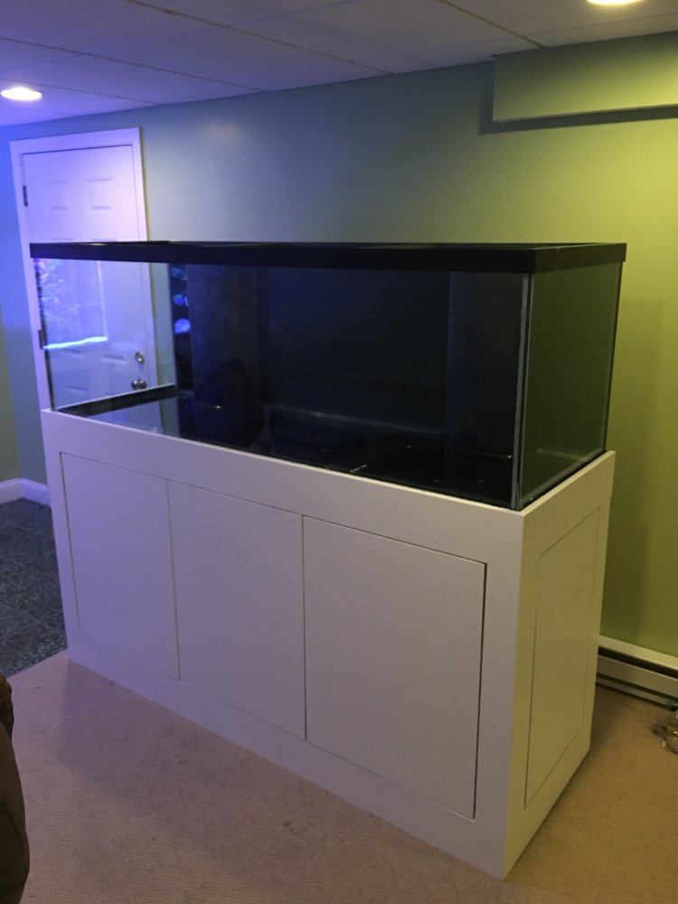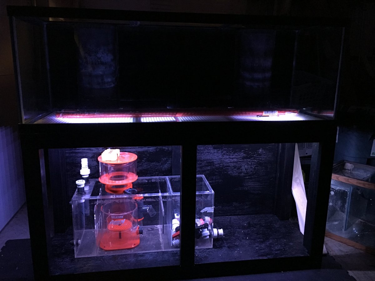 Fast forward to June of 2017. I found the old gear and set up a new 20G nano with plans of getting into corals and having a clue as to what I was doing. That lasted all of a month. By July I had drilled and build a 40G breeder and built a black stand for it that looked like a Red Sea stand. As my rock finished curing in the 40B someone on BRS had a 90G up and I snagged it. The 40 lasted all of 3 weeks without ever putting fish in it.