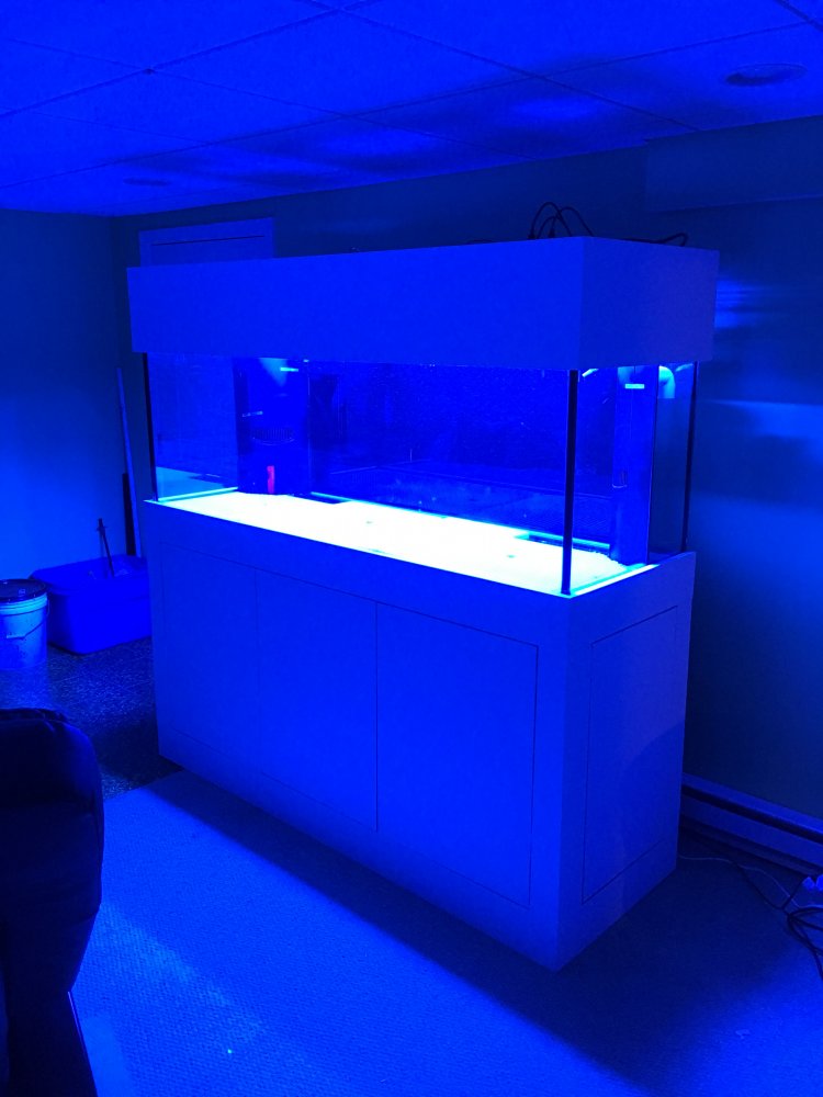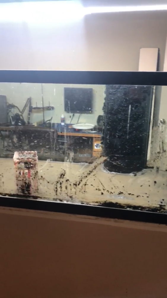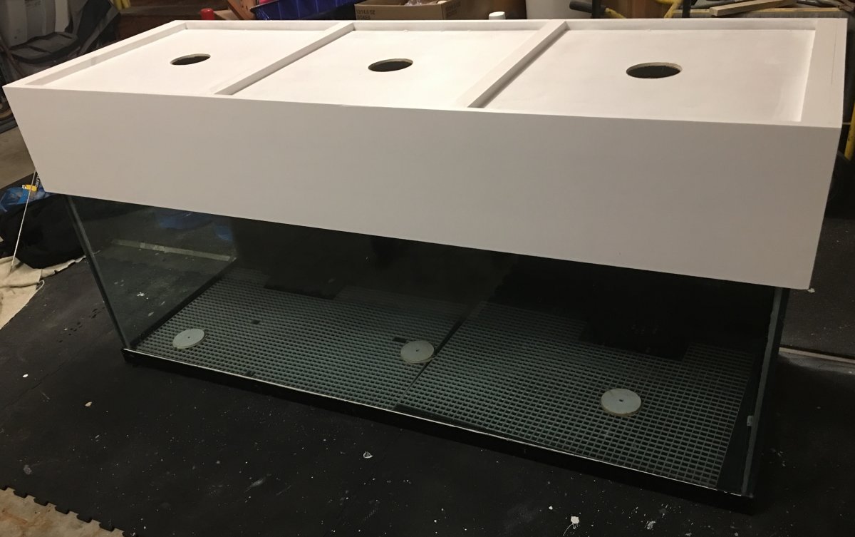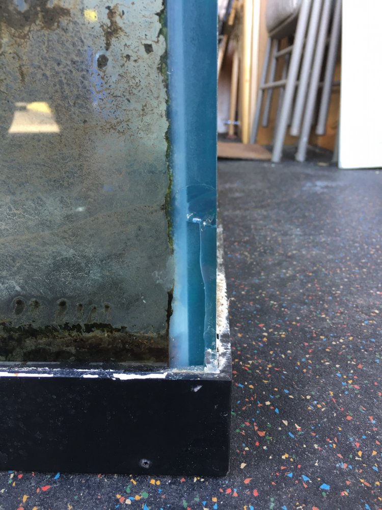 In February I found a 180 for cheap money an hour away from where I live. However it was freshwater and had the dual column overflows I hated. However it was a great deal and beggars can’t be choosers. I made the drive with my friend and loaded two truck loads of gear. The tank was absolutely disgusting and needed some serious TLC. After spending two hours removing fish, mud, and tons of equipment my buddy and I moved the tank into the bed of the truck. All went well. Then during the tie down the glass chips...took a lot of effort to not lose my mind right then and there.