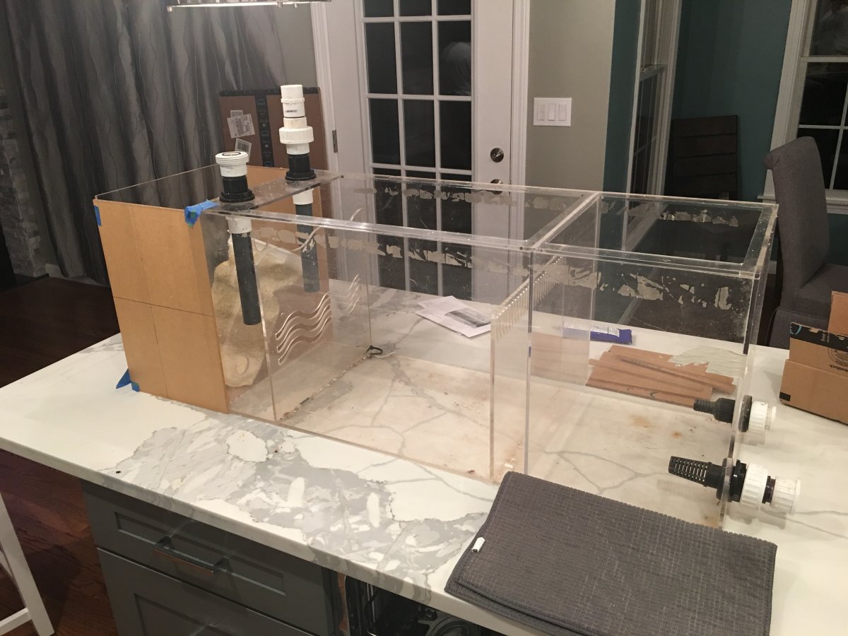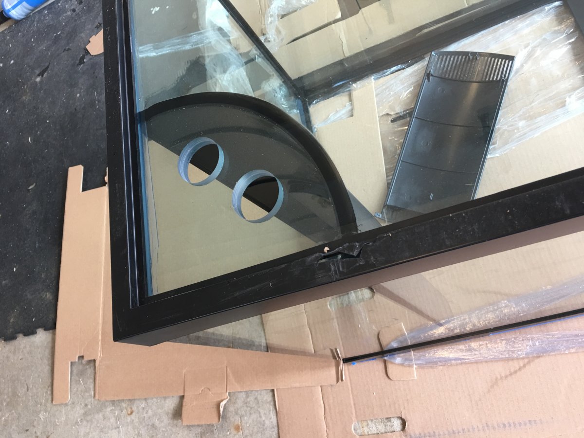 Well, after two separate 180’s I said F*** It. No more messing around trying to find a good deal. Went with a brand new marineland, corner overflows, and black silicone. Now off to Miami, build to be continued come Tuesday.