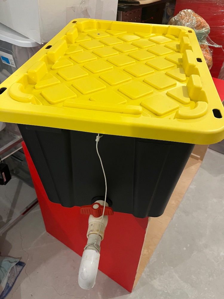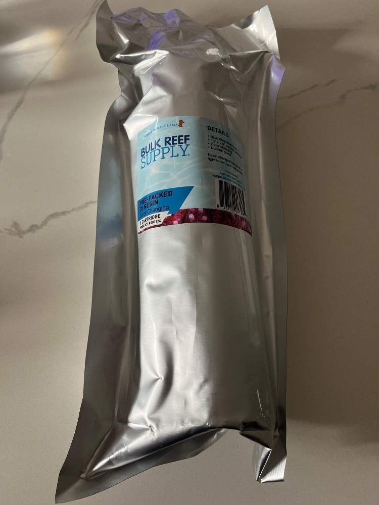 4 stage 75 GPD BRS RO/DI unit with unopened new di resin refill and RO water holding container with float valve.