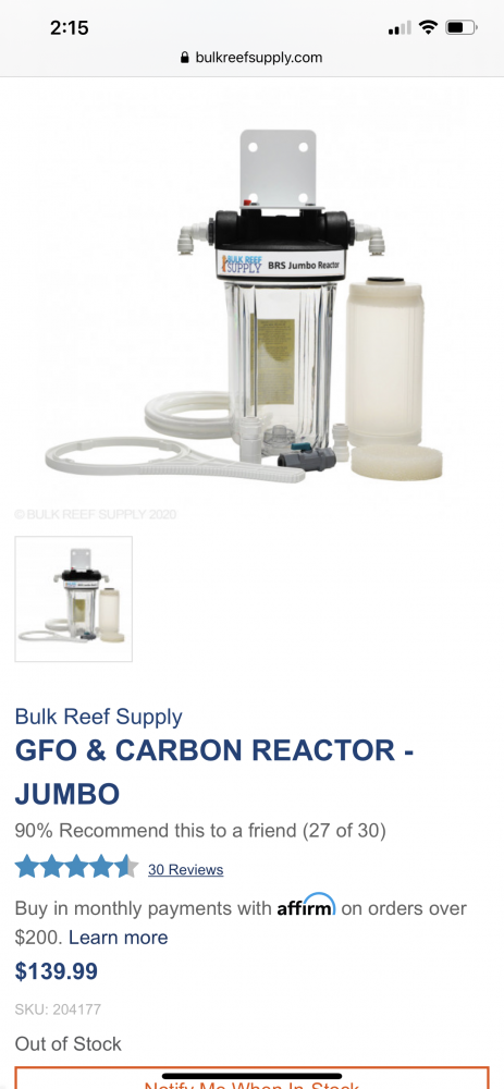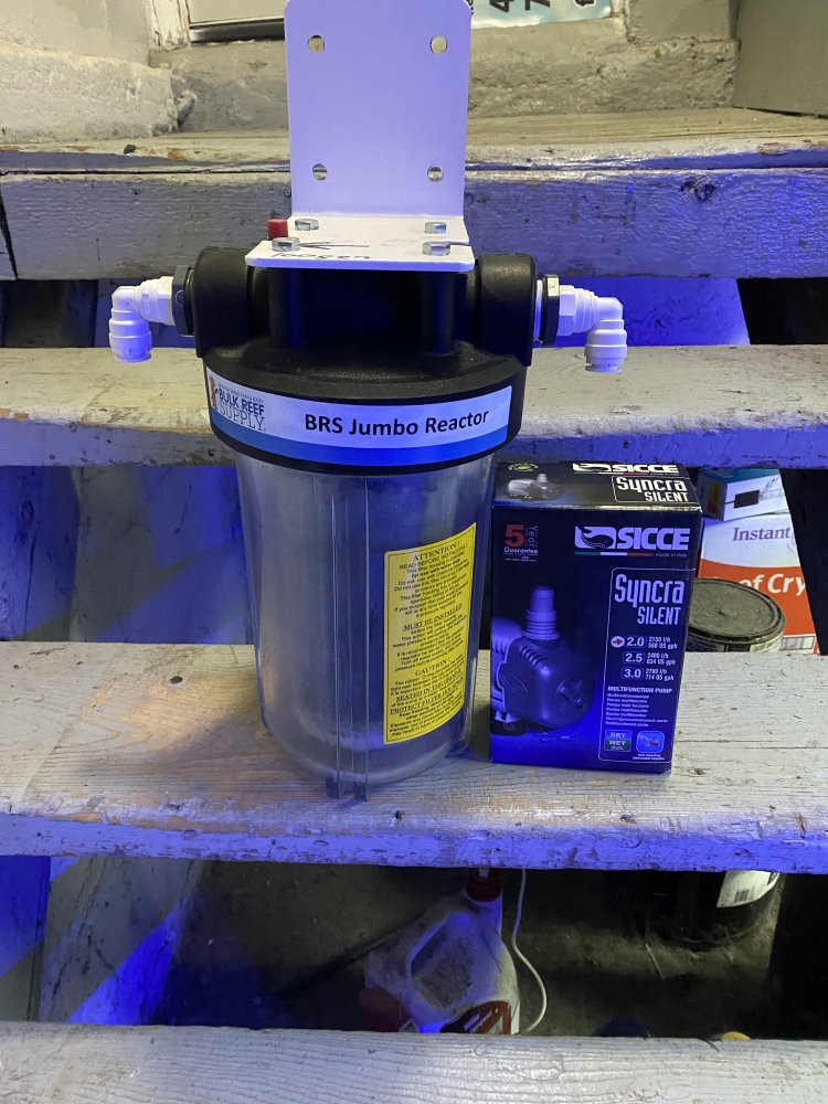 Bulk Reef Supply jumbo reactor and Sicce pump with Quick disconnect tubing, GFO, extra cartridges, and wrench $175.00