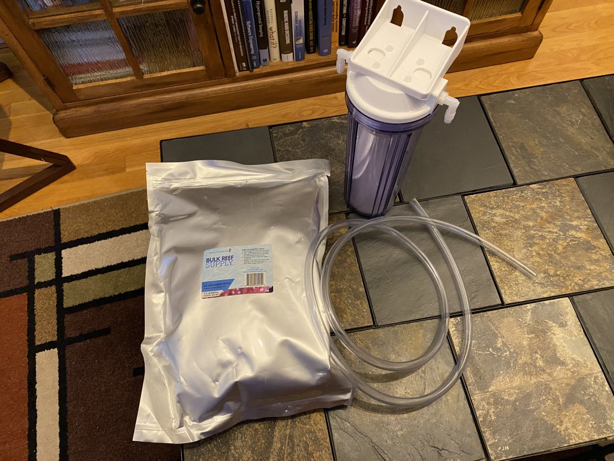 I bought these a few months ago and opened the package for the scrubber to try and raise my pH, but never ended up using it. Just not enough space under the tank. It's a 7.5 pound of color changing BRS media, unopened. Paid $75 for it all new, will let go for $25. Pickup in Acton, MA.