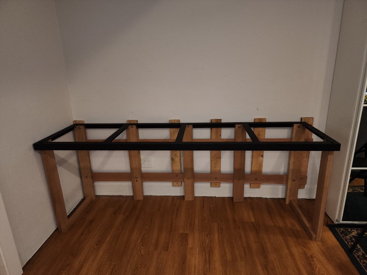 Has anyone tried this and if so how have you worked out the loading? I figure the tank, water rock etc. will put this over 3000 lbs. Split that across the primary horizontals and then workout the deflection load to understand what beam dimensions might be needed to keep deflections to under ~ 1/32". Trouble is, I did not do engineering and don't know how to work out the loading details.