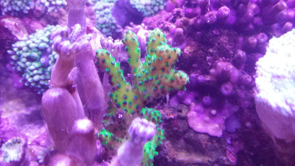 Hey guys, any idea of what this green coral (in the middle of the cloves) might be? I got the cloves from a member...unfortunately I can't remember who...and one day a few little tiny green polyp looking things appeared. Over the last few months, they continued to grow & now it is an actual piece of coral. Pretty cool! I'm just wondering what kind of coral it is? Thanks for the help!